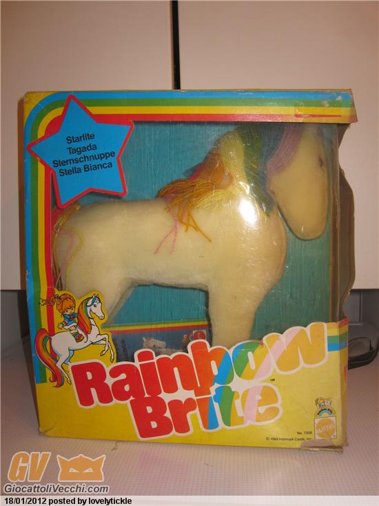 E il peluche del cavallo di Iridella. Mai aperto ma la confezione mostra la sua età...