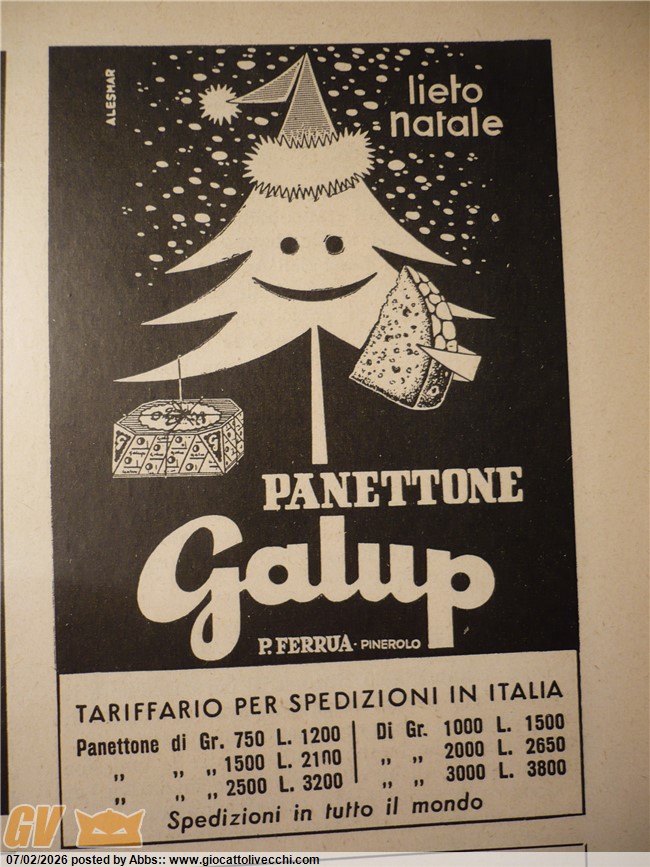 questo personaggio enigmatico non credo che avesse un nome, e sicuramente non c`erano i suoi adesivi, all`epoca non si usava. più facile che magari ne esistesse una sua controparte tridimensionale stile omaggio della Sperlari, ma in realtà è abbastanza improbabile. però esisteva e quindi doveva avere una certa valenza, cioè non era messo lì a caso. personaggio natalizio oscurissimo che chiameremo proprio Galup, e di cui non esistono notizie. personaggio anche lui completamente dimenticato e riesumato in questo post dal sottoscritto come un Indiana Jones di manufatti mostruosi. i panettoni Galup con l`albero di Natale grottesco in stile mostro di Carletto il principe dei mostri. cose mai viste in nessun universo conosciuto. neanche nel mondo di Natale.
