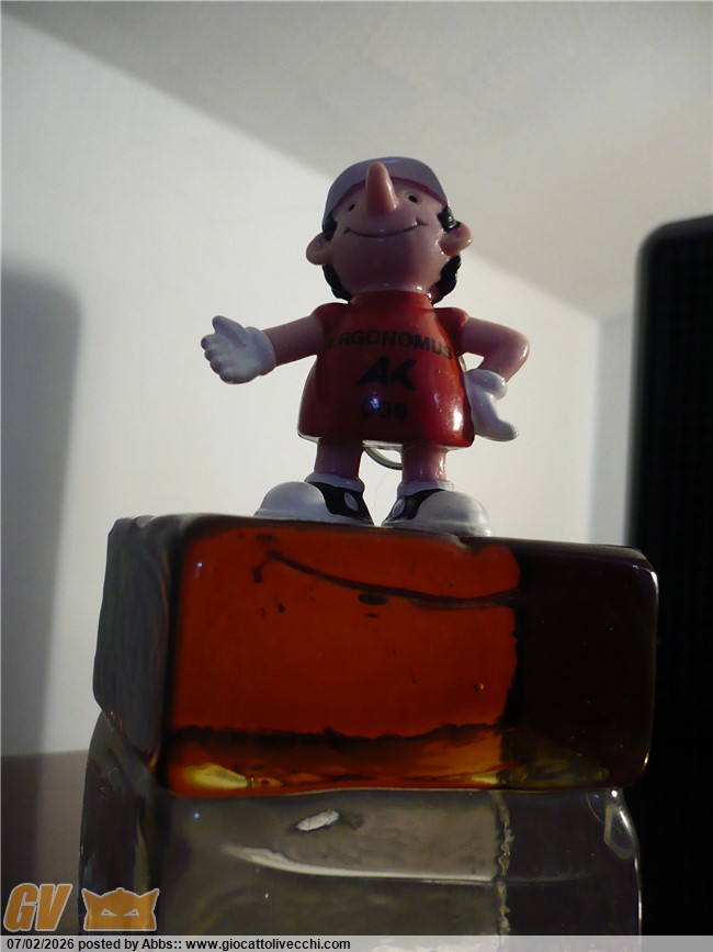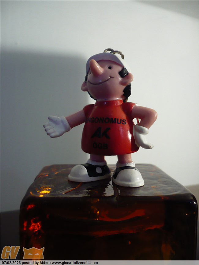 in teoria, facendo delle ricerche, la scritta Ergonomus dovrebbe essere riconducibile a delle sedie ergonomiche in legno flessibile; e anche lo stesso personaggio con quelle fattezze da pinocchio sembrerebbe proprio legato al mondo del legno. ma come dicevo è tutto molto criptico. sicuramente per chi colleziona personaggi in stile Puffi può rappresentare qualcosa di veramente originale e sicuramente un personaggio da avere. sono proprio quei personaggi che non si trovano. personaggi oscurissimi e criptici dal passato sconosciuto che donano originalità alla collezione. sono super contento di averlo in collezione; e in vetrina crea un sacco di curiosità. e poi mi piace proprio perchè è unico. personaggio pubblicitario in stile Puffo davvero unico.