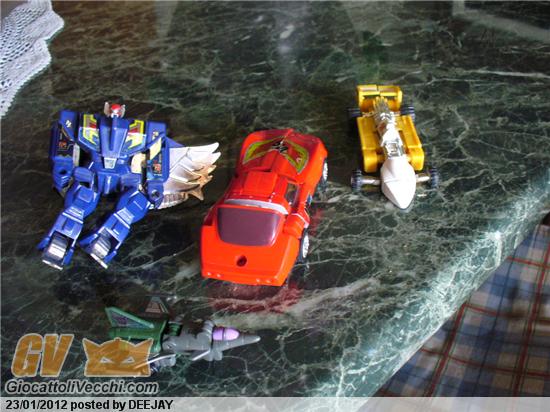 La corvette rossa è la diaclone. Gli altri pezzi sono tarocchi, tranne l`aereo mini che è un TF micromaster. Figurati!!!