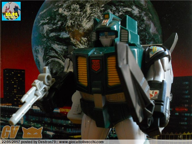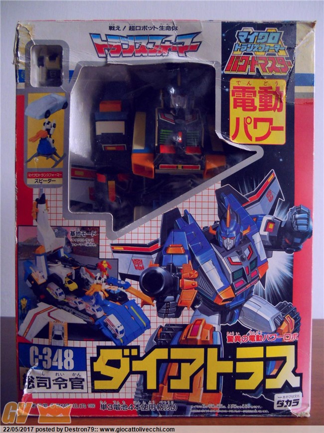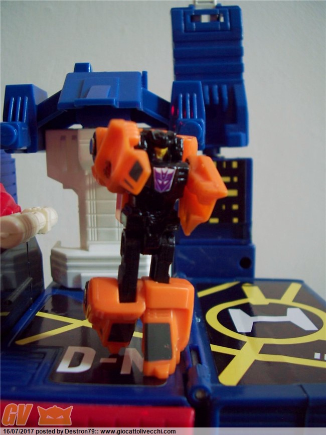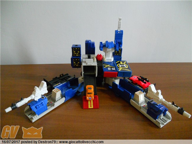 Ed ora proseguo nell`aggiornamento, ancora una volta con i TRANSFORMERS! Torniamo dalle parti di Zone, dove abbiamo qui l`unico cattivone uscito in occasione di quell`effimera serie. Noterete subito che si tratta di un recolor in versione Distructor di Guardian (Metroplex), trovata furbastra ma non certo nuova in casa Takara. Questo personaggio non appare purtroppo nell`episodio animato uscito in VHS, ma viene introdotto nel manga che ne ha continuato la storia. Per altro, viene presentato come temibile avversario per il nuovo eroe Dai Atlas, al punto da riuscire quasi a farlo secco!