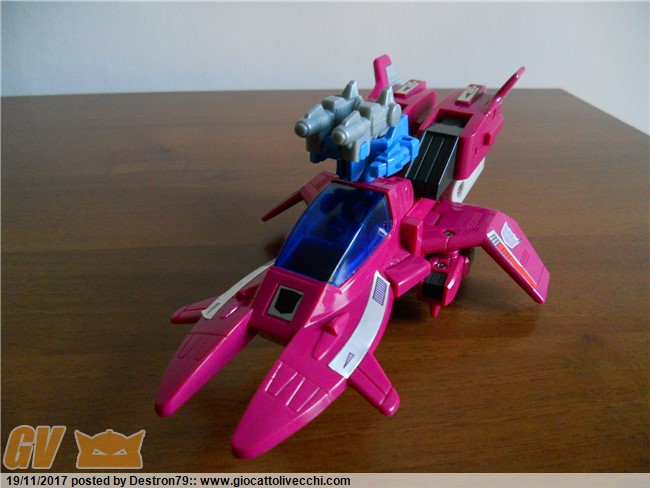 Per quanto riguarda il giocattolo, questo Distructor è uno dei Transformers G1 più articolati in assoluto, molto bello sia nel design spaziale che nella sgargiante tinta fucsia, tipica dell`epoca.