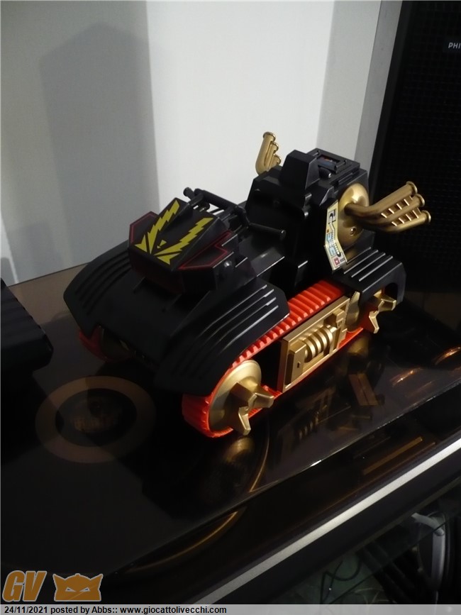 bel tocco davvero per un veicolo da utilizzare nel motu world, e grandissimo design nel complesso. anche questo, come i due precedenti, con parti dorate e altre tipicità cromatiche anni 80 come i cingoli rossi e gli adesivi sul manubrio gialli e rossi su sfondo nero