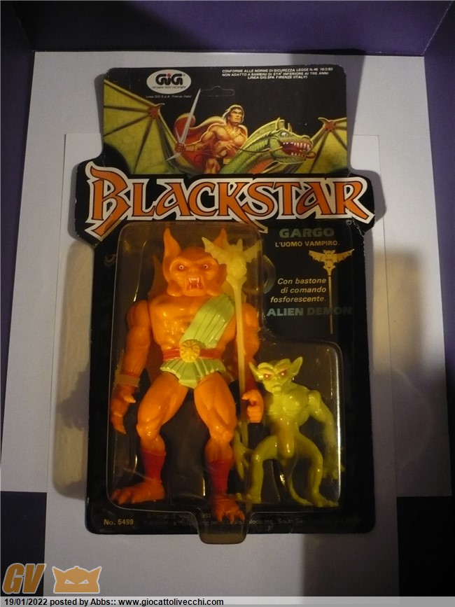 come nuovo nel suo blister dell`epoca, quello della Gig, lo stesso che avevo da piccolo. col suo demone e lo scettro fosforescente a forma di pipistrello. cattivo il Gargo!