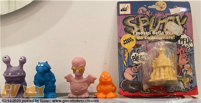 Mitico Abbs! Che bello leggerti! Gli spuzzy li avevo anche io da bambino. Ricordo che io ed i miei compagni li portavamo a scuola e la maestra puntualmente ce li cestinava tanto erano schifosamente puzzolenti....noi ce li riprendavamo ma come dicevi tu avevano breve vita perché erano comunque destinati all`immondizia. Oggi li ho recuperati tutti trovandoli qui su GV ma ancora devo pensare ad una soluzione espositiva che non inquini tutto il resto della collezione... Posto una foto dei miei ai quali ho aggiunto recentemente Cloaca A presto caro e buone feste! Dario