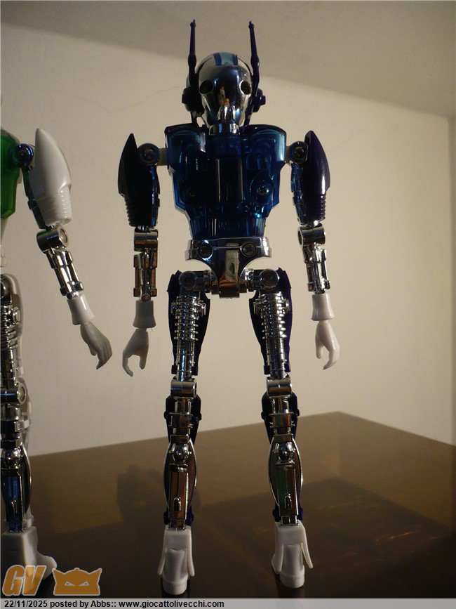 fantastico e super Takara Style il binomio armatura bianca e parti traslucide verdi! questo Timanic è un capolavoro in puro stile Takara; uno dei miei pezzi preferiti della mia collezione. il Timanic bianco, fantastico! una chimera. e il blue no? con le parti trasparenti arancioni e le cromature scintillanti che risaltano vicino all`armatura blue scuro. per me sono fantastici entrambi. che capolavori che faceva la Takara. che spettacolo e che grande anima Takara questi Cyborg, con quei caschi con le parti trasparenti e tutte quelle cromature; con la possibilità di illuminarsi dall`interno, e tutte le viti in acciaio inossidabile. personalmente li preferisco anche ai primi Henshin Cyborg, che, mi spiego, erano davvero ultra fantastici così tutti traslucidi e con i circuiti a vista, però derivavano ancora dai Gi Joe, erano in poche parole dei " Gi Joe trasparenti ", mentre i Timanic erano proprio e solo un`invenzione della Takara, con uno sculpt tutto loro. per me sono fantastici.