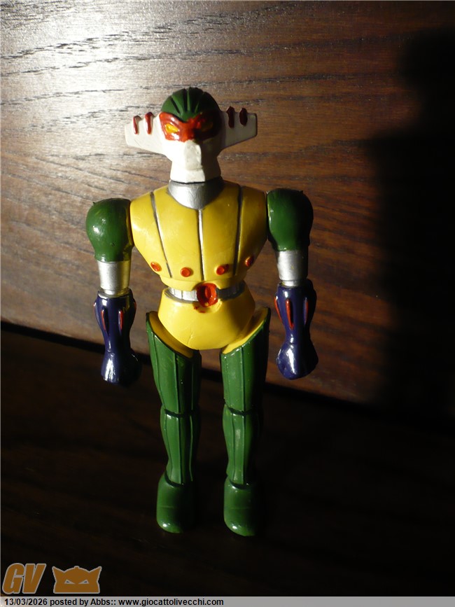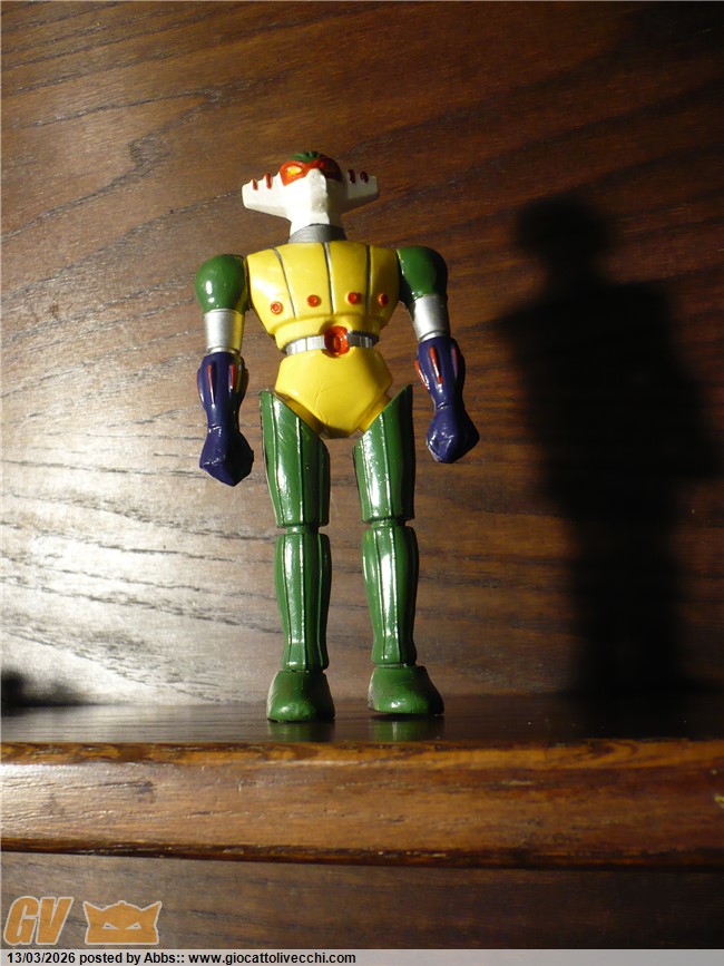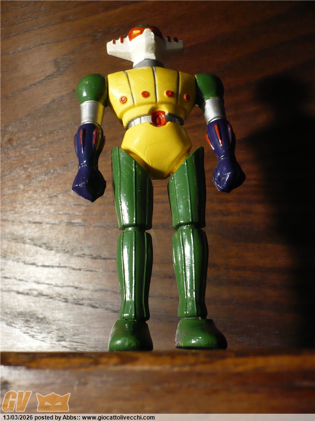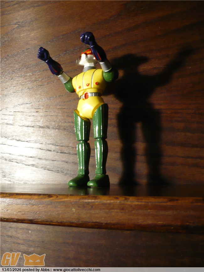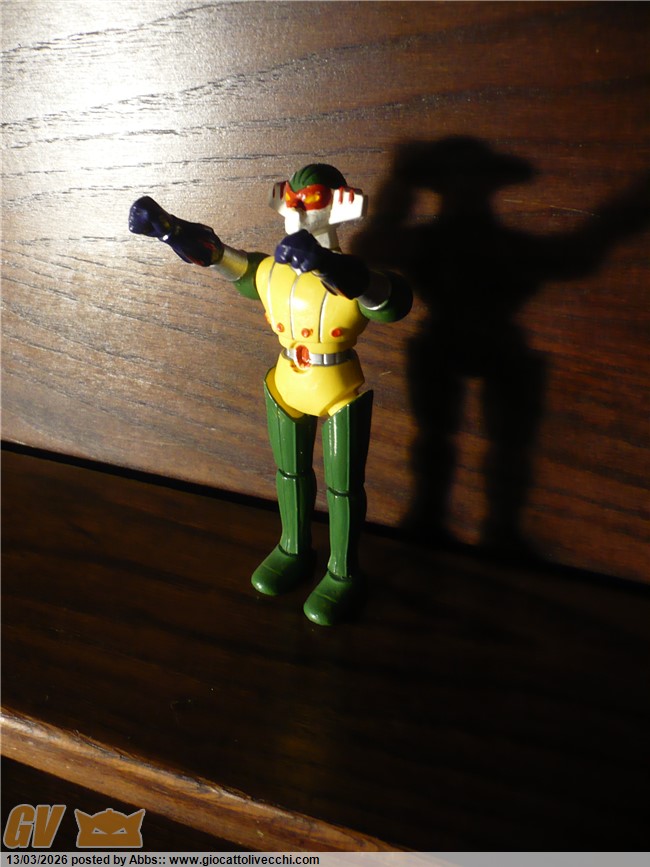 questo qui sotto è il Jeeg della Gig, aha aha aha aha! sembra un gioco di parole! ( è quello in blister distribuito dalla Gig ). un pezzo stupendo secondo me. questo poi è come nuovo. magari averlo avuto da piccolo! l`avrei fatto battagliare con mille dinosauri! che pomeriggi! magari proprio dopo il cartone! con questo mini Jeeg, impavido contro dinosauri giganteschi! te lo potevi portare dove volevi e vivere mille avventure proprio come nel cartone. bellissimo!