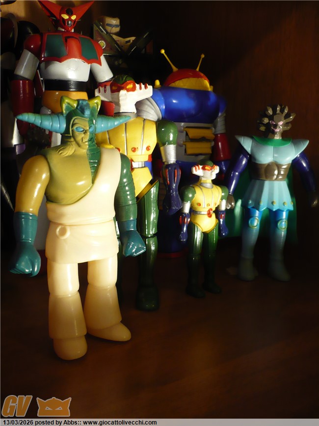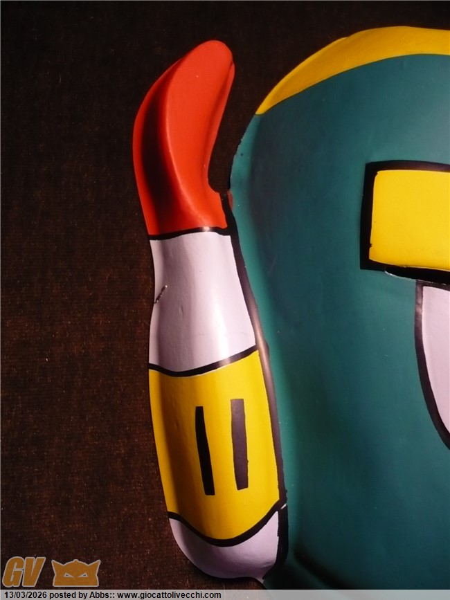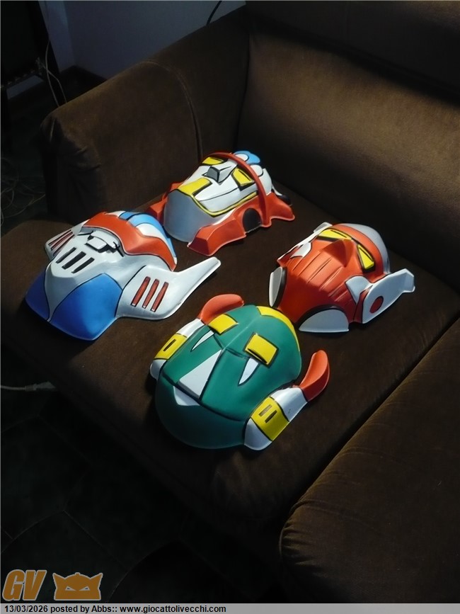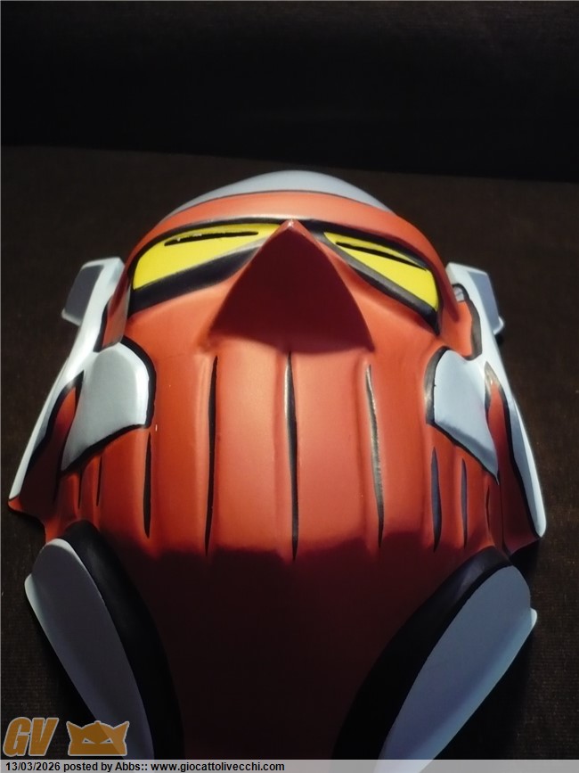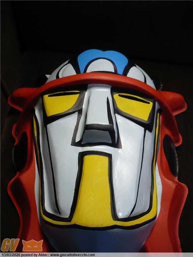 che mitici che sono gli Astrorobot, e che mecha design potentissimo. nati nel periodo aureo dei robot anni settanta, sono come dei Mazinger dopati. una sorta di "muscle car" del mondo dei robot classici. dei robot da "motor Show", dei robot dai mille colori e mille fantasticherie per il grande spettacolo. dei robot quasi da parata direi. sono dei robot che dovevano stupire e glorificare il concetto, allora nuovo, del grande robot pilotato. erano proprio la glorificazione di questo concept: dei Mazinga all`ennesima potenza. in loro c`è un pò di Mazinga e un pò di Goldrake, e il tutto in una chiave potenziata e dai mille colori. sono proprio robot da grande show, quasi da fiera, da parata, come dicevo. e i bambini di allora li amavano proprio per questo, e perchè erano quattro Mazinga in una volta sola! i bambini che allora impazzivano tanto per questi nuovi robot inventati dal grande Go Nagai, nel cartone degli Astrorobot potevano trovarne ben quattro, e tutti potenziati. erano il massimo come mecha design, e da sempre i miei preferiti. c`è poi anche una curiosità che riguarda proprio il loro mecha design. osservandoli tutti e quattro insieme mi sono accorto di alcune interessanti analogie tra l`uno e il tre, e tra il due e il quattro: l`uno e il tre infatti condividono la pettorina a V, le "mutande" classiche alla Mazinga, e gli avambracci muscolati. allo stesso modo il due e il quattro condividono i pettorali muscolati, la "gonnellina" sotto alla cintura, e le spalle sparanti. tutto ciò è molto interessante e crea curiosità: se il quattro è quello dotato di più potere ypsilon, forse il numero due, che mantiene appunto lo stesso mecha, è il secondo robot più forte? e perchè il numero tre possiede lo stesso mecha del numero uno che è il capo squadra? forse sono solo casualità, ma sarebbe stato bello approfondire il concetto; anche perchè poi ogni telespettatore si vedeva come pilota del proprio robot preferito e quindi sarebbe stato davvero interessante un approfondimento sulle loro caratteristiche generali. comunque veramente fantastici come mecha design. rappresentano proprio il concetto del classico robot pesante degli anni 70. belle anche queste maschere. mi immagino il giorno in cui non si troveranno più, o si troveranno solo tutte scassate. trovarle in un negozietto è stato veramente emozionante. belle così, proprio come nuove.
