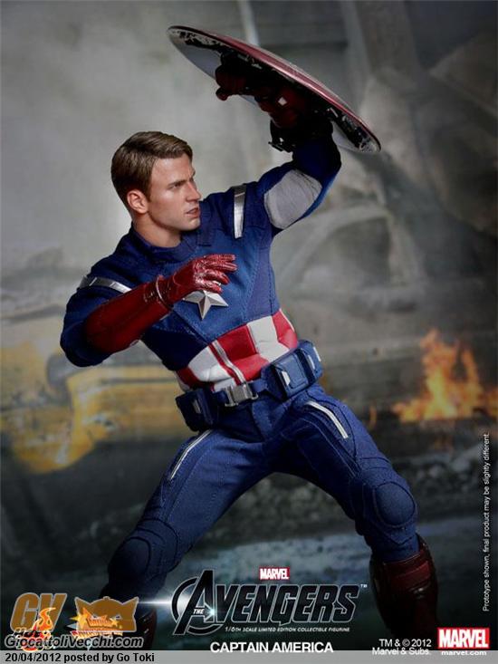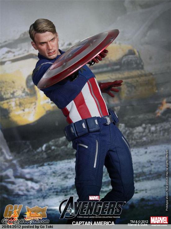 The 1/6th scale Captain America Limited Edition Collectible Figurine specially features: - Authentic and detailed fully realized likeness of Chris Evans as Captain America in his hero costume in the The Avengers movie - Approximately 31 cm tall - One (1) newly developed helmeted head - One (1) newly developed alternate head with authentic likeness of Chris Evans as Captain America in the movie - Muscular body with over 30 points of articulations - Movie-accurate facial expression with detailed wrinkles and skin texture - Nine (9) pieces of interchangeable gloved palms including: - One (1) pair of palms for holding shield - One (1) pair of palms for throwing palms - One (1) right palm for pointing palms - One (1) pair of relaxed palms - One (1) pair of fists - Each piece of head sculpt is specially hand-painted