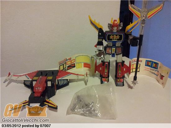 ciao....ti confermo che si tratta del trider dx medio trasformabile + il relativo shuttle.....manca di un pugno......valutazione credo intorno ai 150-170 euro.... la scatola che hai postato non appartiene a questo robot bensi al trider ST......simile come proporzioni ma non trasformabile.....