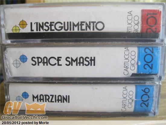 Codice cartuccia Nome inglese Nome francese Note PC/SD 201 Chaser Gobeur Clone di Pac-Man PC/SD 202 Space Smash Météorites PC/SD 203 Saucers Attack Envahisseurs Clone di Space Invaders PC/SD 204 Raging Turtle La Course à la Tortue PC/SD 205 Breakaway Mur de Brique Clone di Breakout PC/SD 206 Martian Martian Clone di Galaxian PC/SD 207 Outworlder La Rivière Sauvage PC/SD 208 Expedition Trésor du Pharaon Clone di Berzerk PC/SD 209 Le Chevalier du jeu PC/SD 210 Space Scout Les Aventuriers de l`Espace Evasion extra-terrestre