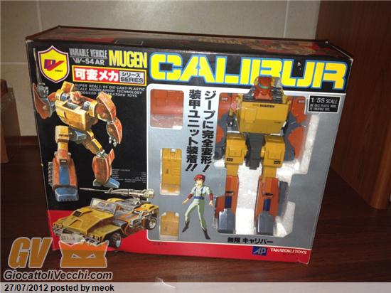 Difatti il mio e` un "Takatoku - Dorvak - VV-54AR Mugen Calibur, scala 1/55", non un "Hasbro - Diaclone - Transormers - Roadbuster". Il tizio dell`asta l`ha venduto come Takatoku, anche se nei titoli ha menzionato Diaclone e Roadbuster, penso per rendere l`asta piu` universale.
