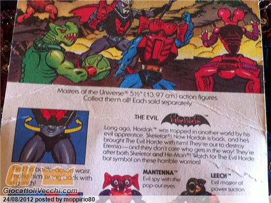 Horde trooper siam tra gli 80 e i 130 euri Hordack siamo sui 70 euri Tung Lashor sui 60 euri Skeletor terror claws siamo tra i 70 e i 110 euri Stonedar una 50 di euri Evil Lyn......ma sei sicuro che il blister sia sigillato? Ha le gambe completamente girate al contrario...difficile che lo vendan già difettoso dalla fabbrica ;-)