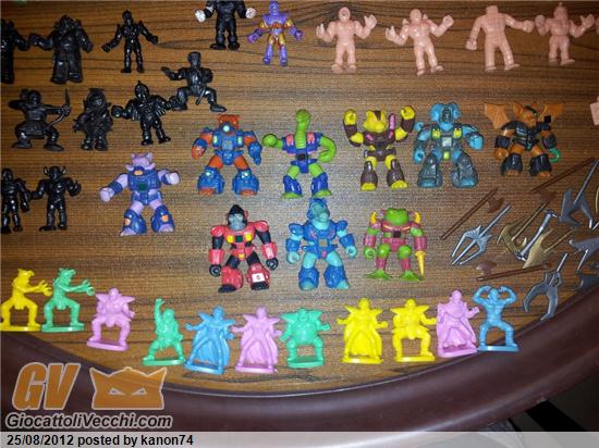 Inoltre ho ritrovato dei personaggi che assomigliano molto agli attuali Gormiti ma sono chiaramente diversi e sul petto hanno lo stemma che si attiva con il calore. Penso che le armi in foto appartengano a loro ma non saprei assolutamente abbinarli. Chi sono? :-)