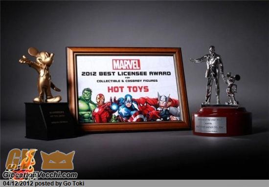 L`ormai famosa ditta di Hong Kong "Hot Toys" ha ricevuto in questi giorni un importante riconoscimento, assegnatogli direttamente da due GIGANTI internazionale dell’Home Entertainment, ossia la "Disney" e "Marvel". La HT riceve l’Awards 2012 un importante onoreficenza data dalle due case americane per essere il miglior produttore di licenze legate ai personaggi Disney e Marvel. Rientrano in questo premio sia le action-dolls realizzate sui personaggi di Tron e Pirati dei Caraibi per la Disney che, e oserei dire...soprattutto, i "SuperEroi" della "Marvel".