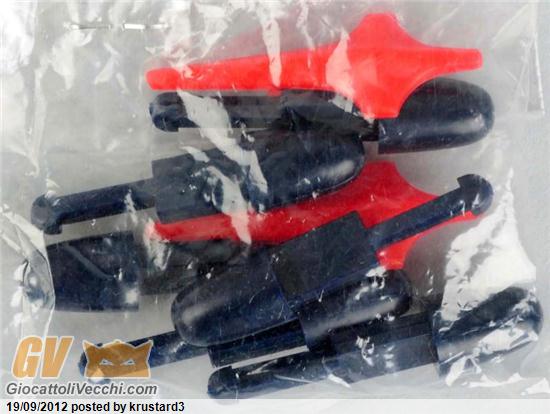 Bhe semplice: la bustina con gli accessori è un assurdità. I missili blu non si sono mai sentiti, anche se l`inserizione può recitare "exceptionally rare blue variant missiles". Poi (qui non vorrei sbagliarmi) le croci rosse di riserva mi pare siano 4 e non 2. Unito al fatto che la graffetta sul sacchettino sembra pinzata ieri, io di certezza sull`originalità del pezzo ne avrei poca. Poi, a meno che qualcuno non abbia contattato direttamente il venditore o la casa d`aste per ricevere più informazioni, la plastica di contenimento interna e le istruzioni in foto non appaiono, e quindi per me non ci sono. E` escluso che si parli di un pezzo deadstock.