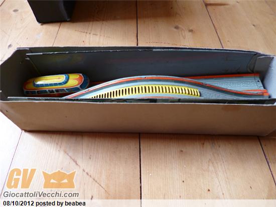 Valutazione valutazione treno a carica di latta su pista con cartone dell`epoca anni 50\60