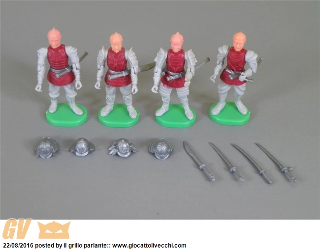 - 3 serie braccia e gambe color grigio... torso colore oro, rosso, blu... cappello, fodero e katana color grigio - 3 serie braccia e gambe color arancione scuro... torso colore oro, rosso, blu... cappello, fodero e katana color grigio - 3 serie braccia e gambe color azzurro... torso colore oro, rosso e blu... cappello, fodero e katana color grigio - 3 serie braccia e gambe color giallo... torso colore oro, rosso e blu... cappello, fodero e katana color grigio - 1 serie color arancione chiaro braccia e gambe... torso color oro... cappello, fodero e katana color grigio - 1 serie colore marrone scuro braccia e gambe... torso color oro... cappello, fodero e katana color grigio - 1 serie colore senape braccia e gambe... torso color oro... cappello, fodero e katana color grigio... - 1 serie colore verde chiaro braccia e gambe... torso color oro... cappello, fodero e katana color grigio... - 1 serie braccia e gambe colore rosso- verde- blu scuro- marrone chiaro... torso color cromo... cappello, fodero e katana colore nero... - 1 serie braccia e gambe colore rosso- verde- blu scuro- marrone chiaro... torso color cromo... Cappello color cromo, fodero e katana color nero... - 1 serie braccia e gambe colore rosso- verde- blu scuro- marrone chiaro... torso color cromo... cappello, fodero e katana colore antracite...