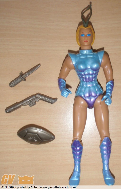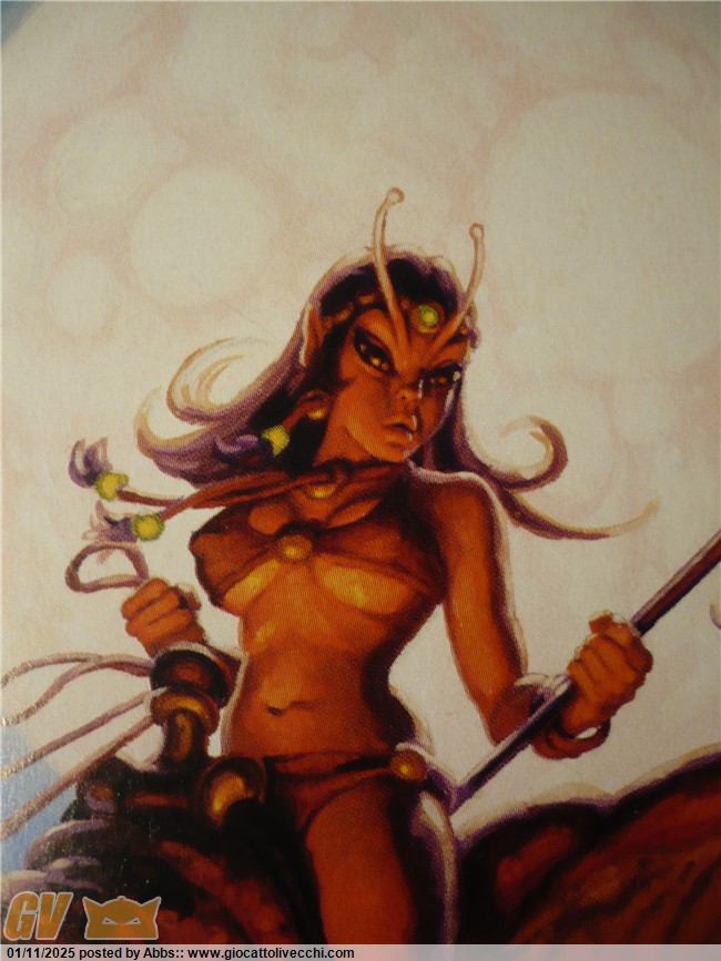 chissà, magari ai produttori dei Sectaurs era piaciuta l`idea degli umanoidi-insettoidi, e poi hanno deciso anche per degli insettoni cavalcabili. boh, o magari invece questo disegno non centra un fico secco con la serie! però bisogna dire che questa guerriera umanoide sembra proprio un Sectaurs, ha proprio gli stessi occhi, la stessa espressione insettoide. ricorda vagamente Stellara, la guerriera Sectaurs della seconda serie, ovvero il Sectaurs più raro in assoluto, che non si sa bene se sia rimasta solo nella fase prototipale o sia stata messa in commercio per un periodo brevissimo. c`è chi raccontava di averla trovata in lotto di action figure. mah, forse sono leggende, un pò come il mostro di Locness, che ho visto solo io perchè quello originale si chiamava di Loch Ness. comunque eccola qui sotto direttamente dal mio archivio