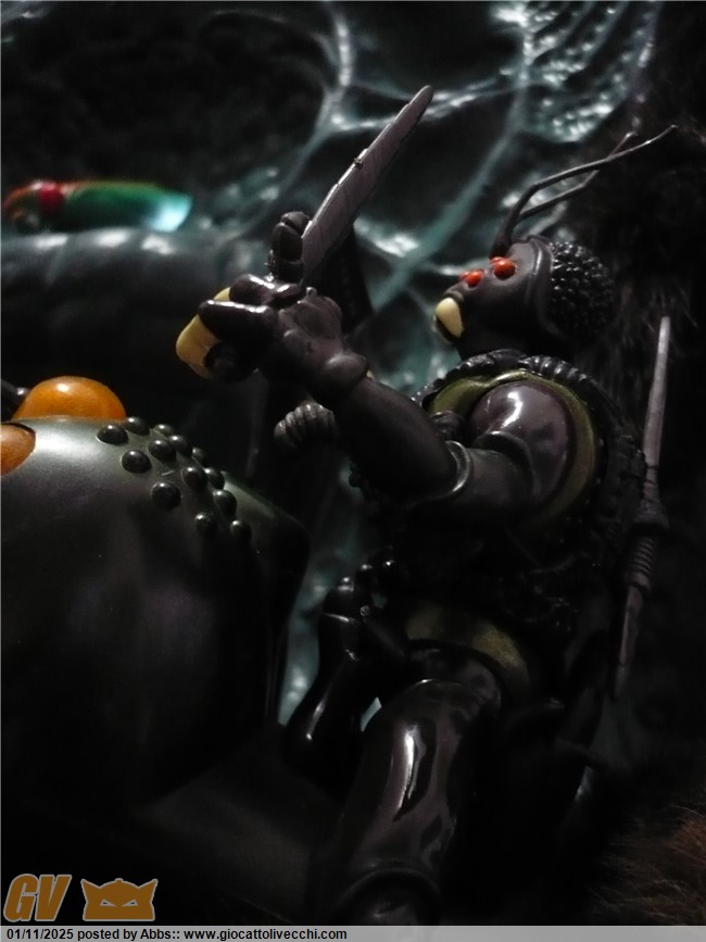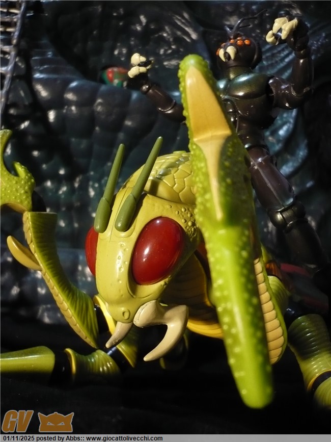 guarda che sculpt che ha! è veramente super dettagliatissimo! solo una volta facevano mostri così. personaggi di carattere che dovevano stupire. non erano delle semplici copie di animali ed insetti esistenti, ma vere e proprie opere di fantasia in cui la componente artistica era preponderante. il tutto unito ad una qualità e a materiali che oggi è impossibile riscontrare nei giocattoli da bancarella quali buste di animali ed insetti vari. ed è proprio per questo che oggi sono così collezionati, non fanno più cose così, appartengono ad un`altra epoca. sono riconoscibili come oggetti di un`altra epoca, con un design riconducibile solo a quegli anni; dopo di loro non si è mai più vista tanta arte per i giocattoli da bancarella, e quando se ne trova uno, è sempre di quegli anni. sono riconoscibili, e proprio per questo hanno un`anima