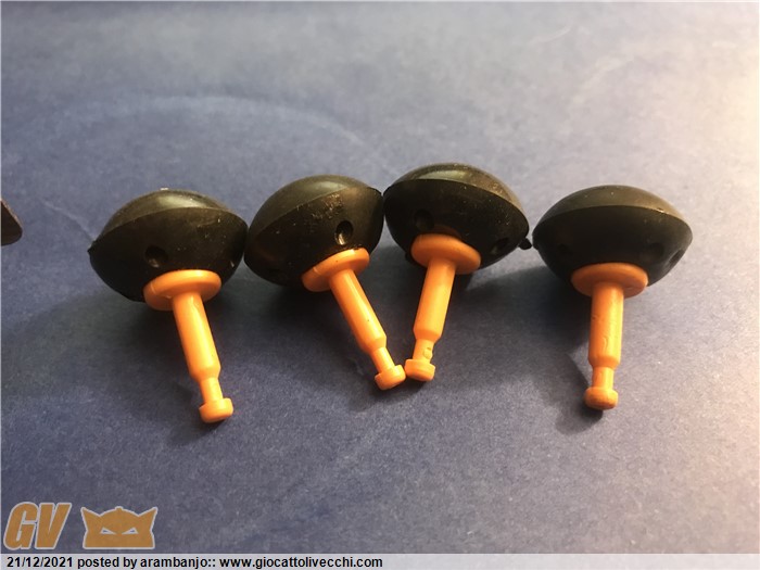 L`altezza massima di ciascun missile (parte gialla in plastica e parte nera in gomma) è di circa 30 mm.