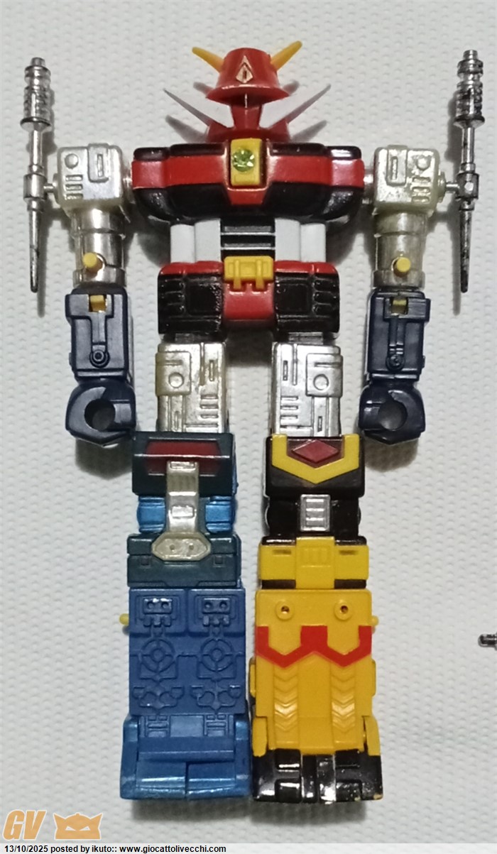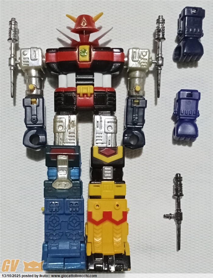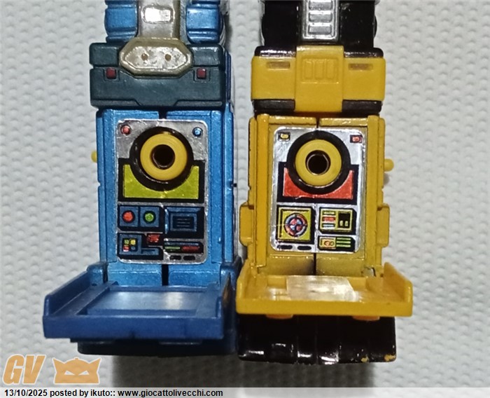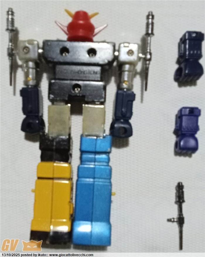 Manca il pezzettino cromato che stava sulla gamba gialla(in corrispondenza delle ginocchia del robot Terremoto)