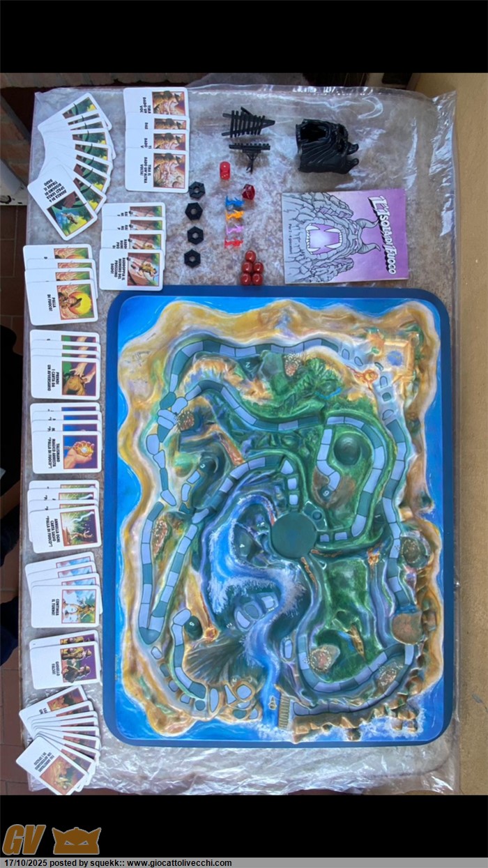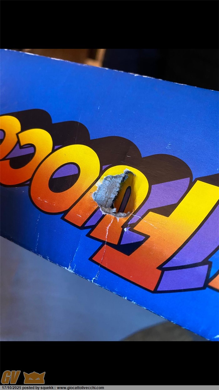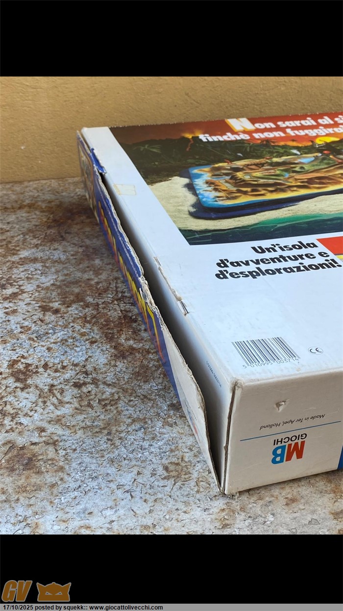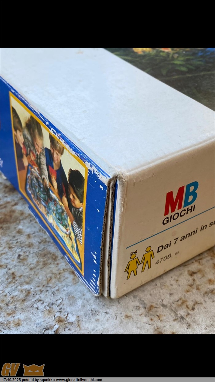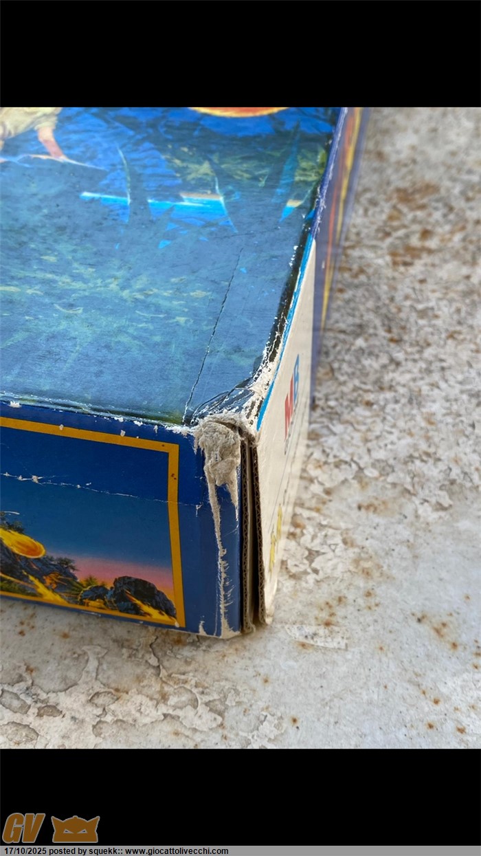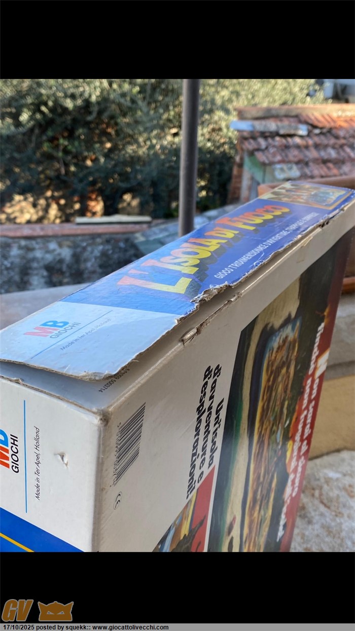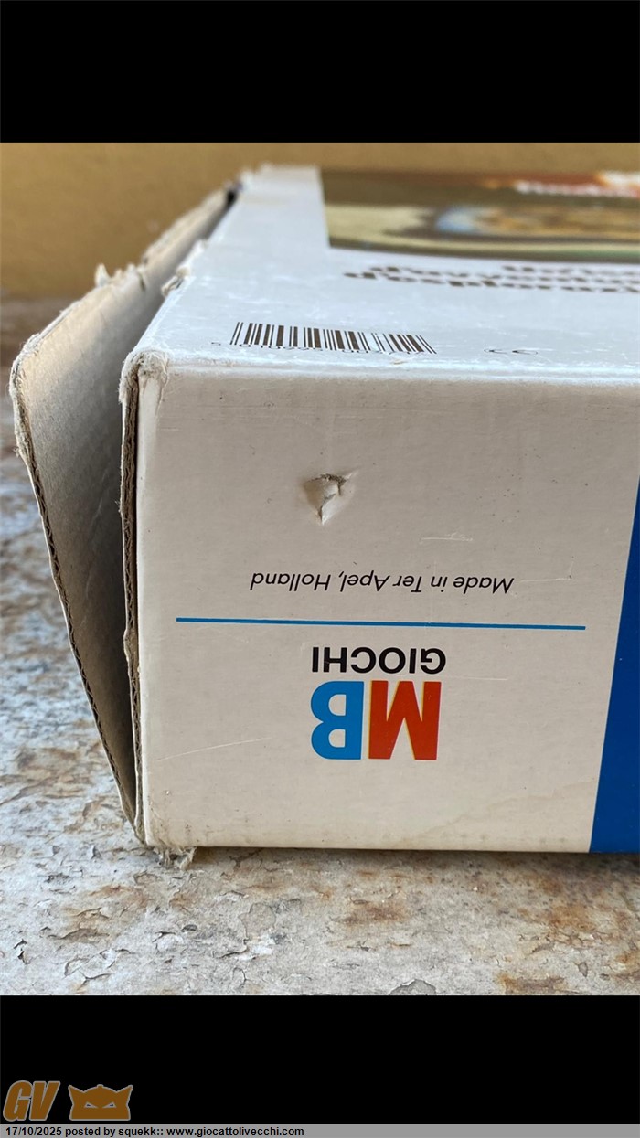 La scatola si presenta in condizioni molto buone e stabili con segni di usura e del tempo.È priva di una linguetta di chiusura su ogni lato(rimane comunque chiusa grazie alle altre rimanenti).È presente un buchino su un lato sopra la “U “ di “Fuoco”(vedi foto) e una piccolissima ammaccatura sotto la scritta “MB Giochi” di un lato(vedi foto)
