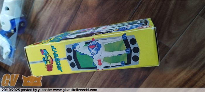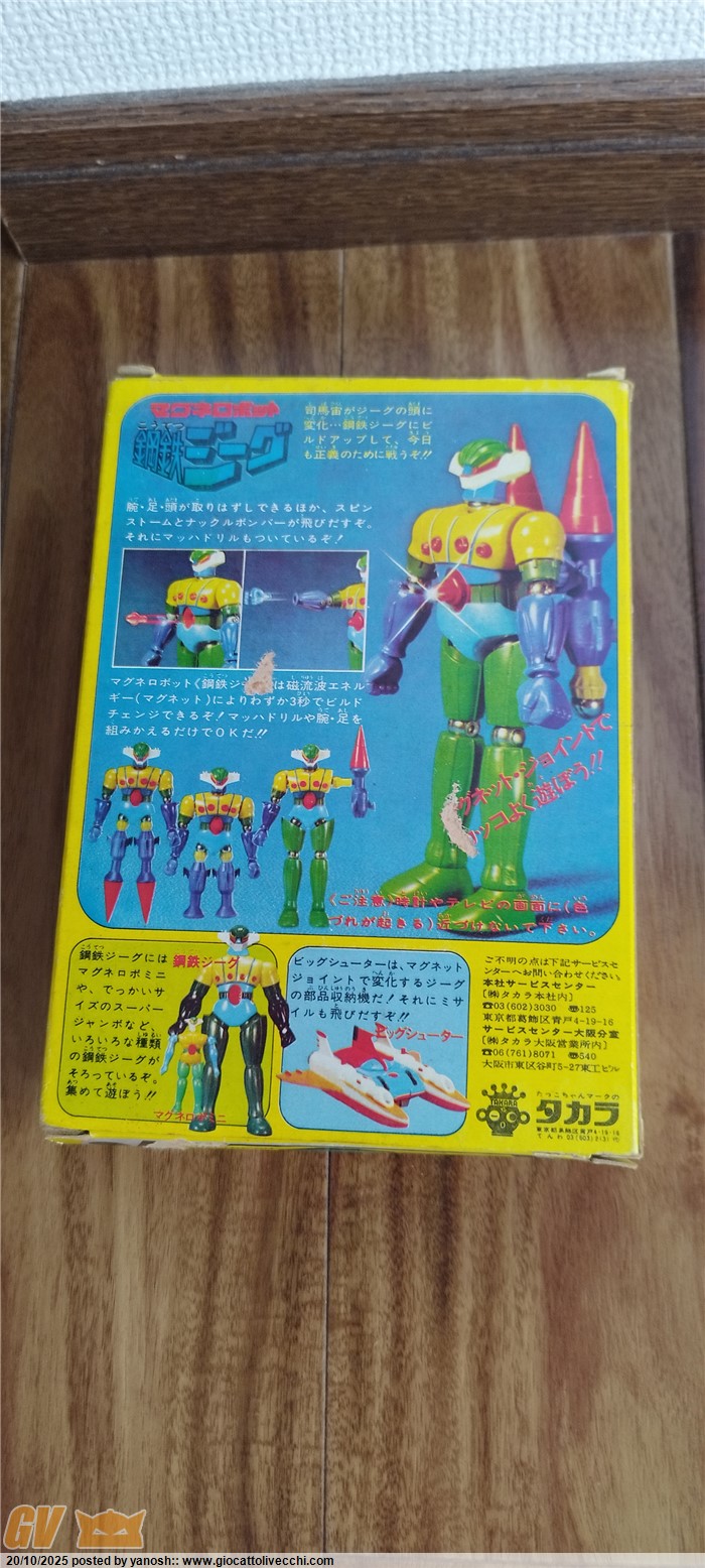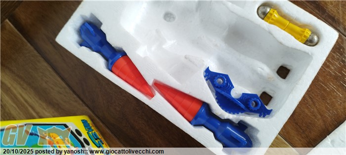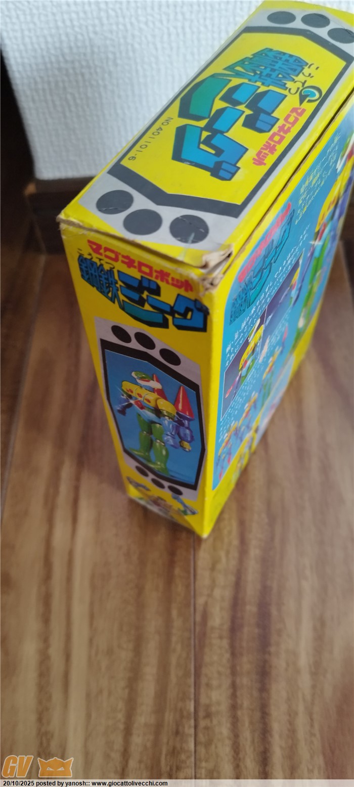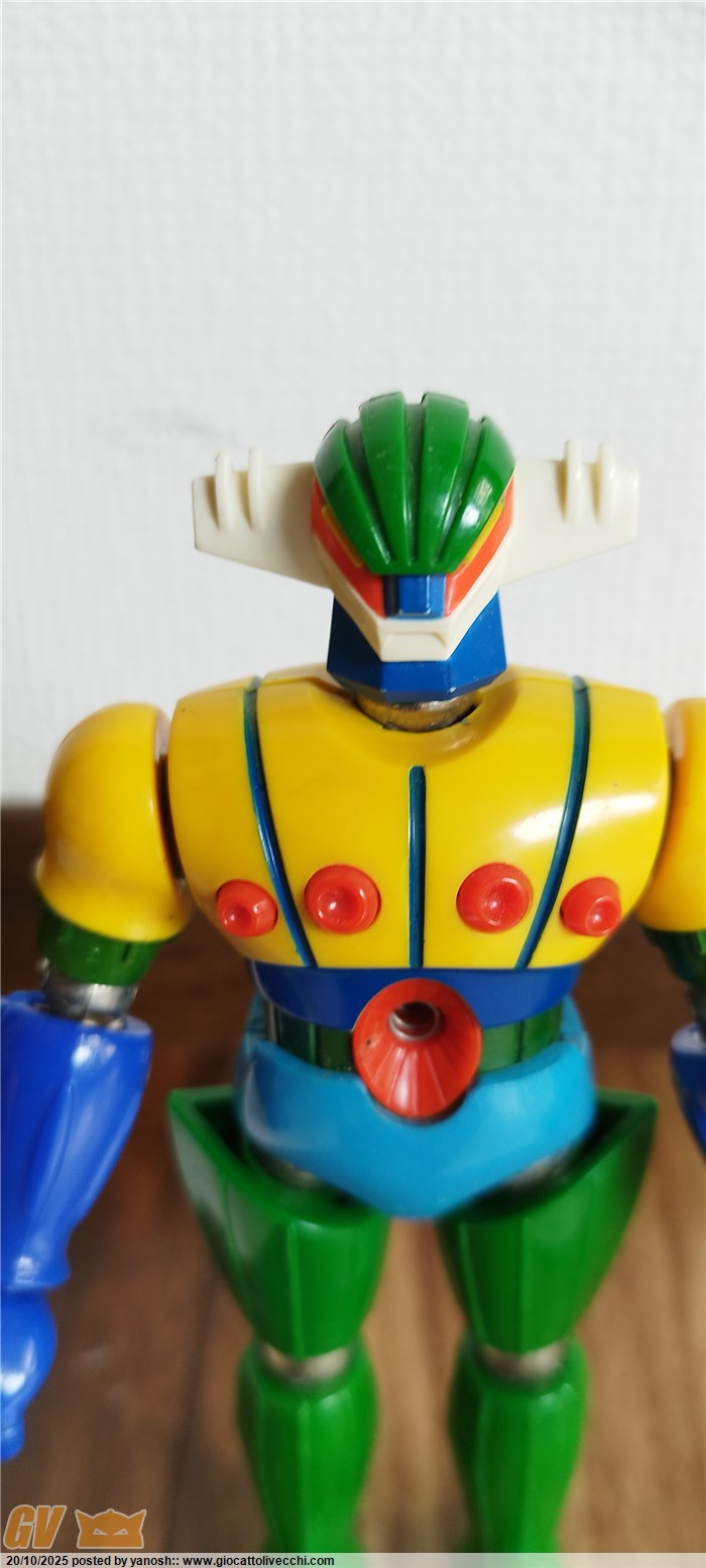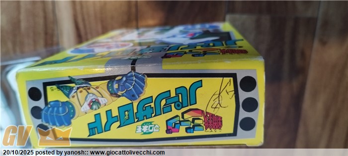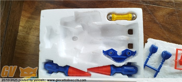 Robot Completo, bello , rigido. Un missile e due pugni sui telai. Polistirolo bello integro, catalogo bello, scatola al di sopra della media, abbastanza rigida. Coperchio presente. Molto raro in queste condizioni.