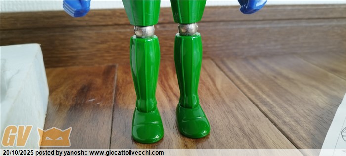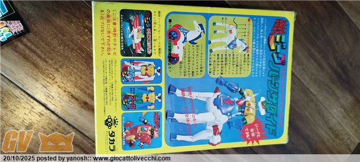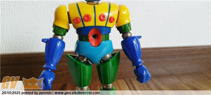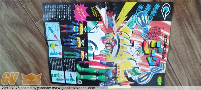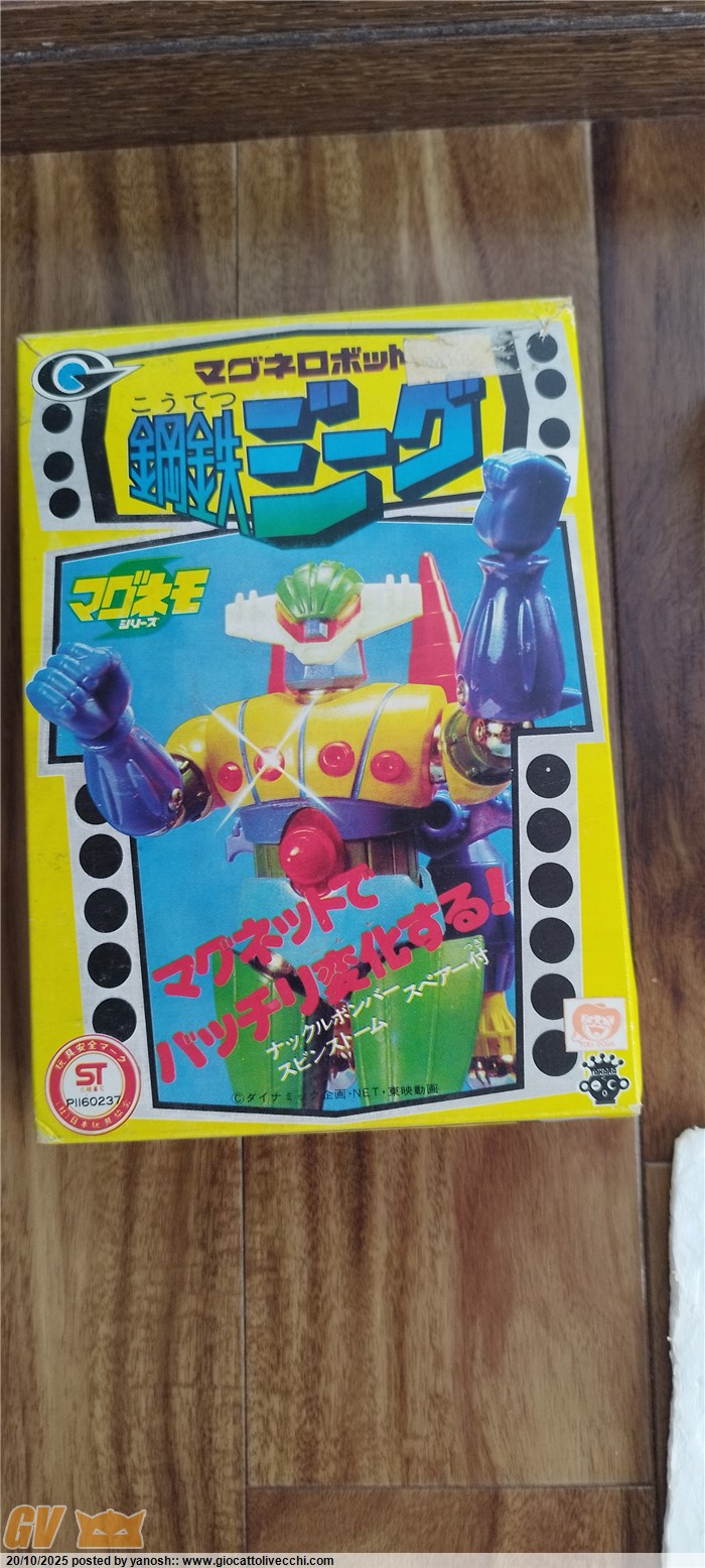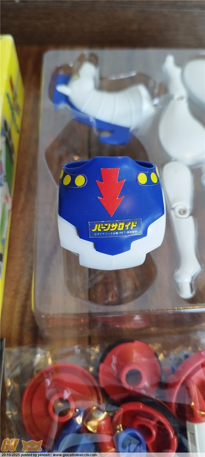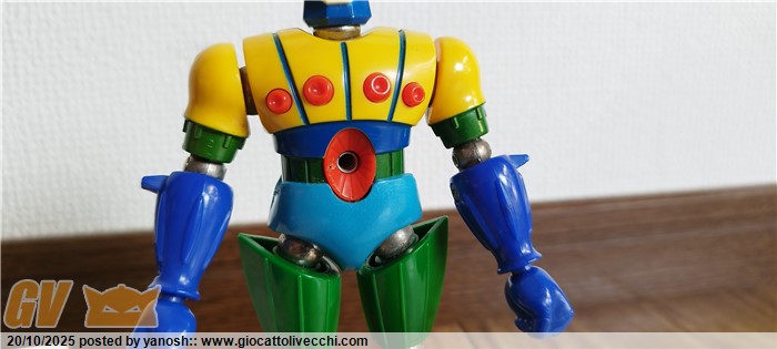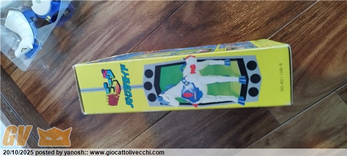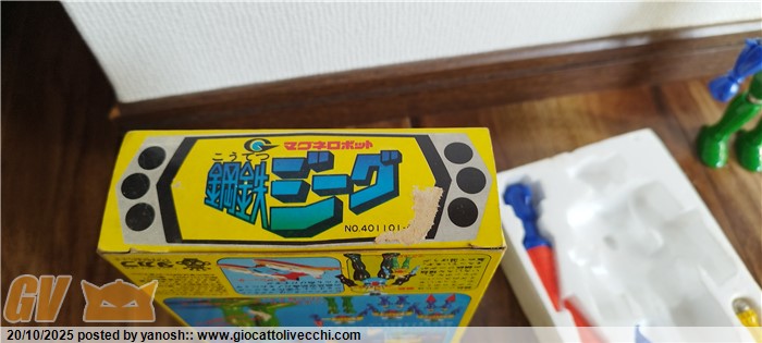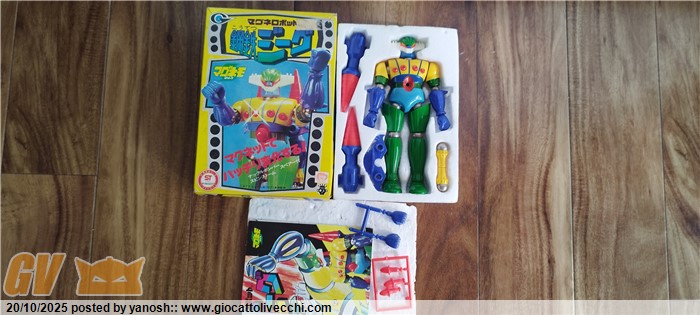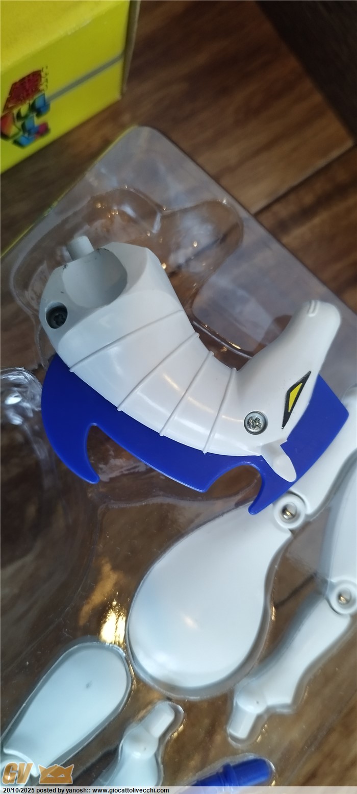 Robot Completo, bello , rigido. Un missile e due pugni sui telai. Polistirolo bello integro, catalogo bello, scatola al di sopra della media, abbastanza rigida. Coperchio presente. Molto raro in queste condizioni.