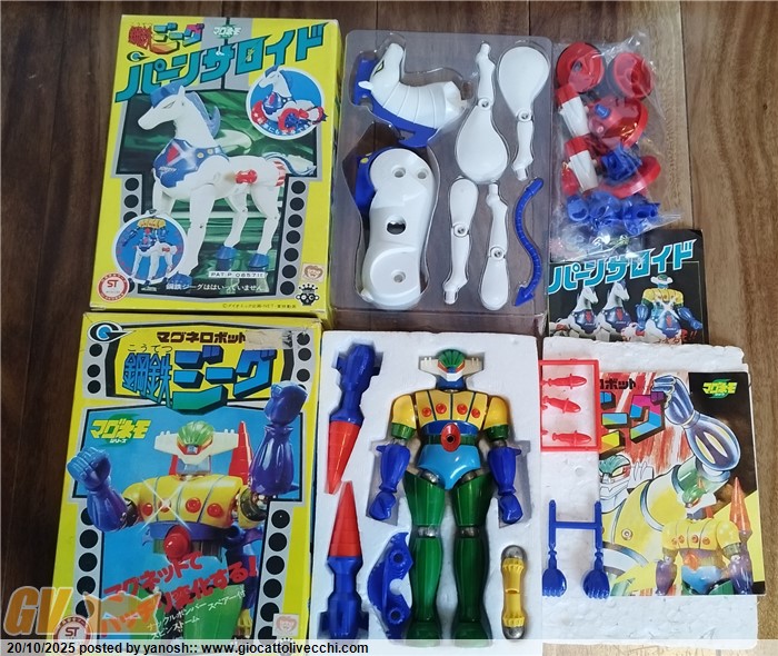BELLI SET JEEG ROBOT TRIVELLE A PUNTA + CAVALLO PANZEROID 1975 TAKARA JAPAN VINTAGE MAGNEMO