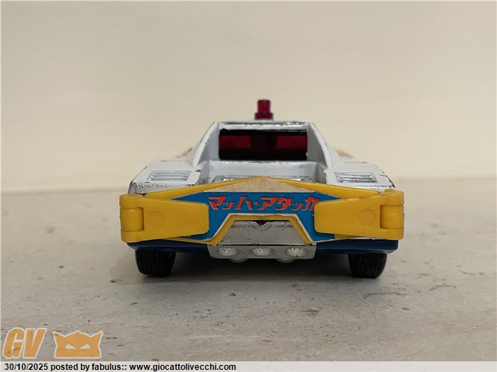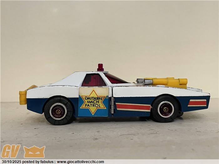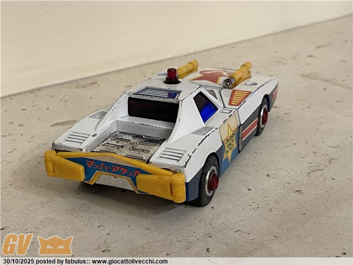 Giocata, meccanismo di scatto della parte frontale testata e funzionante, si trasforma bene, tutte e 4 le gomme sono presenti delle crepe, vernice con delle mancanze nelle parti più esposte, cromature motore posteriore non perfette.
