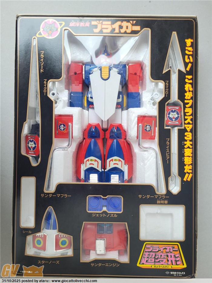 Vendo Bryger dx vetrinetta nera, il robot e` nuovissimo pare mai giocato, i colori sono stupendi, vicino le gambe spesso le vernici sono molto rovinate.Le plastiche bianche, spesso ingiallite, qui sono bianchissime.