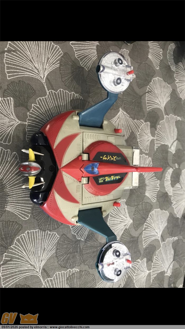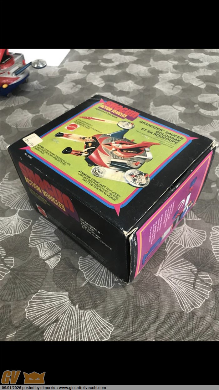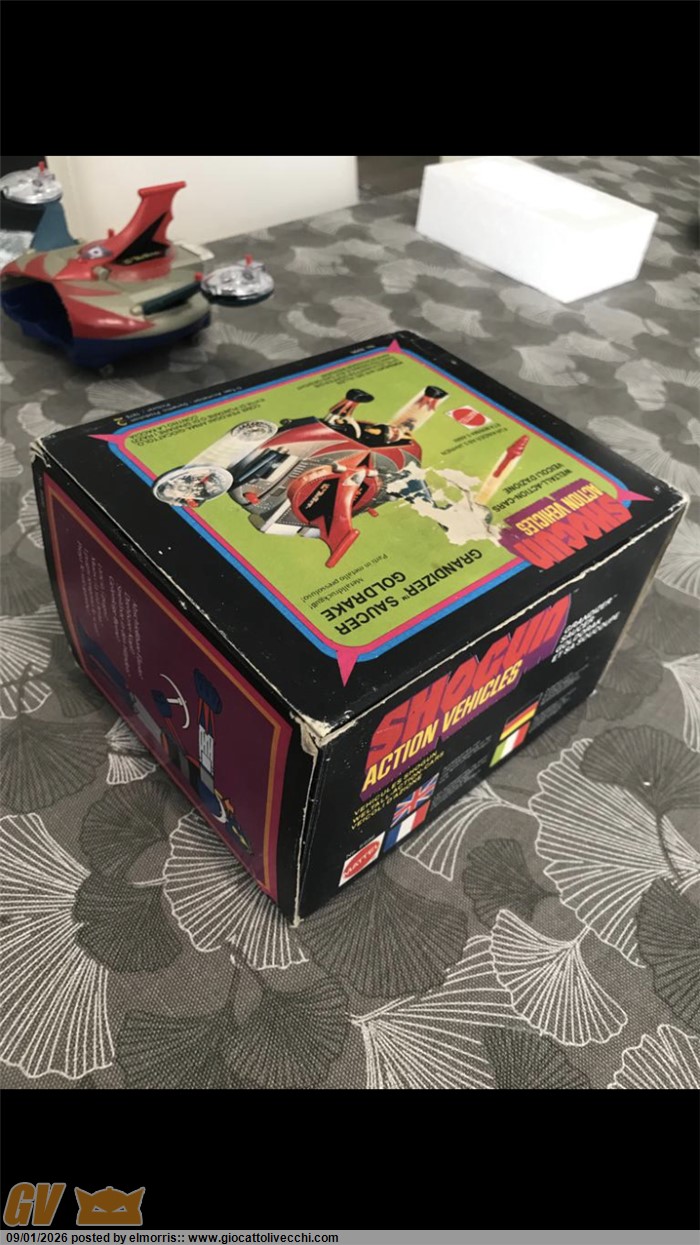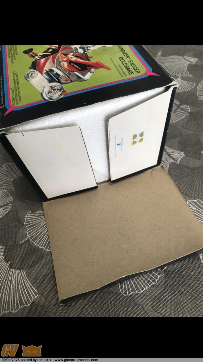 Goldrake mattel dx in box, disco Made in Italy. Fondo di magazzino con difetto sulla scatola e istruzioni. Polistirolo riparato in due punti. Assenza perno blu interno al disco. Per il resto è davvero bello. Ormai rarità assoluta. Direttamente dalla mia collezione personale. Visionabile alle fiere di Verona o novegro. O a Brescia ovviamente.