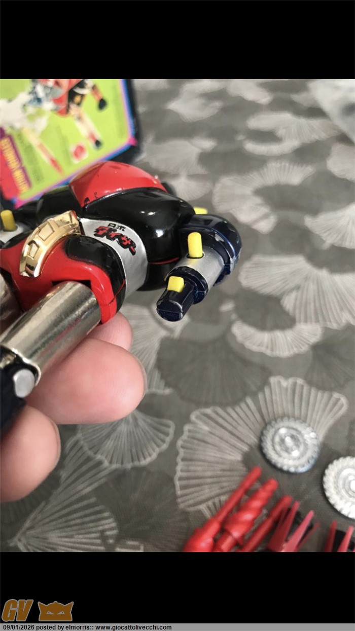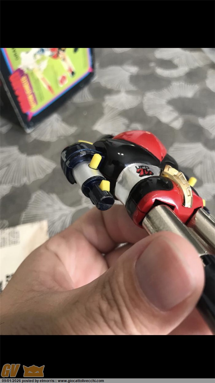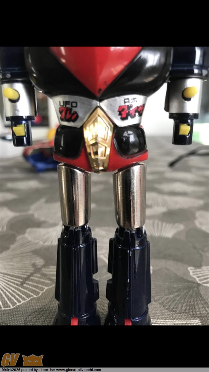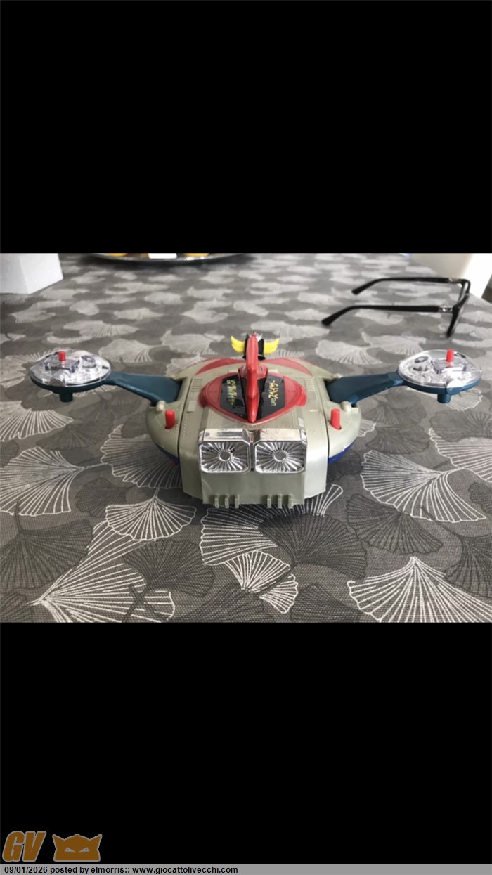 Goldrake mattel dx in box, disco Made in Italy. Fondo di magazzino con difetto sulla scatola e istruzioni. Polistirolo riparato in due punti. Assenza perno blu interno al disco. Per il resto è davvero bello. Ormai rarità assoluta. Direttamente dalla mia collezione personale. Visionabile alle fiere di Verona o novegro. O a Brescia ovviamente.