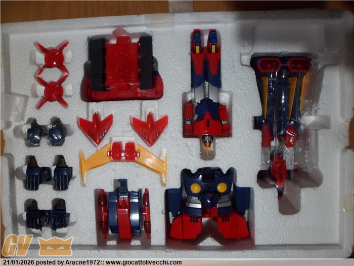 Contenuto (Robot e Accessori): Praticamente nuovo. L`oggetto non è stato esposto , è in condizioni eccellenti, senza rotture o mancanze di verniciatura, completo di tutti i suoi accessori e armi (vedi foto).