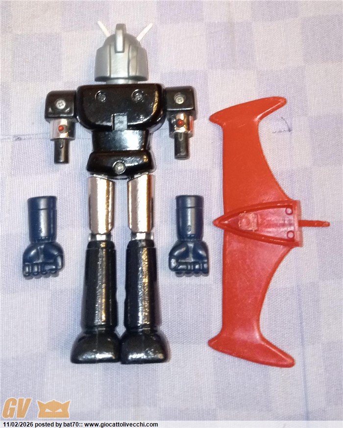 Alto sui 14 cm. in metallo pesante, articolato, lancia i pugni ed è dotato di Ali rimovibili.