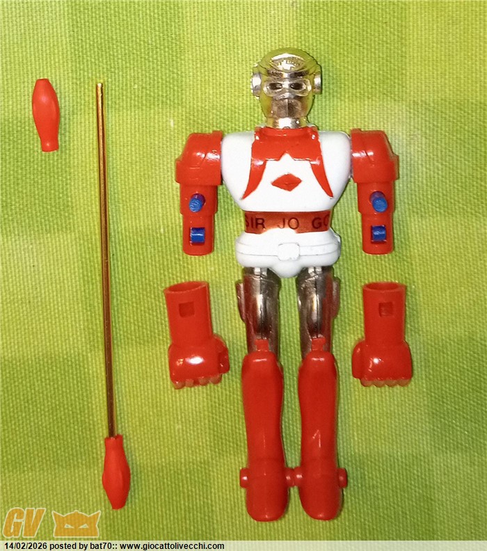 Perfettamente articolato, LANCIA I PUGNI, il GIAVELLOTTO è RIMOVIBILE sfilando il cappuccetto rosso in plastica sulla parte alta (l`altro è fisso)