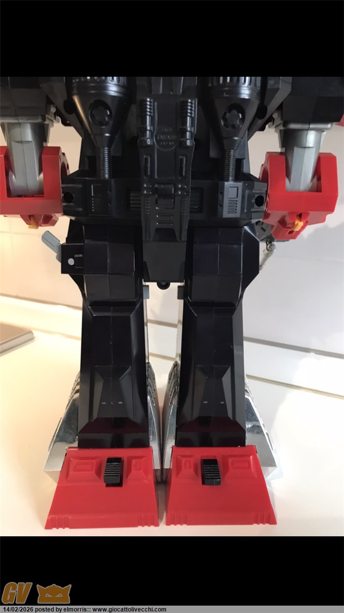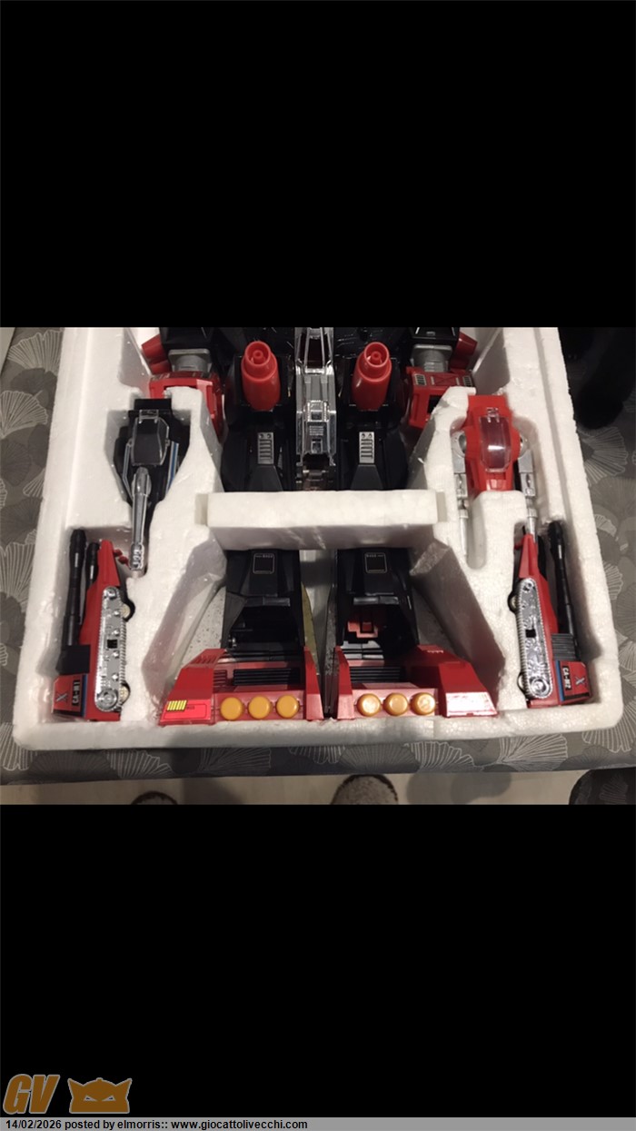 Versione Made in japan. Giocattolo in ottime condizioni. I difetti principali sono la facciata anteriore del box scolorita, la mancanza delle tre navette, libretto catalogo repro, blister in plastica assente, cromature ossidate in alcuni punti.