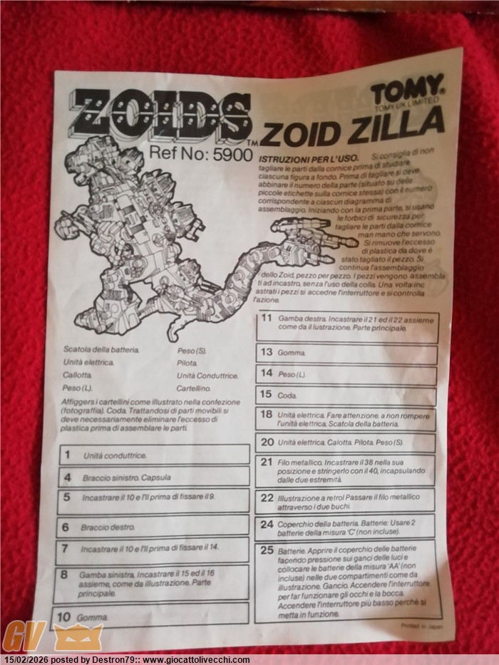 ZOIDS - MIGHTY ZOIDZILLA - 99[[%]] COMPLETO - CON BOX E ISTRUZIONI - TOMY - 1984