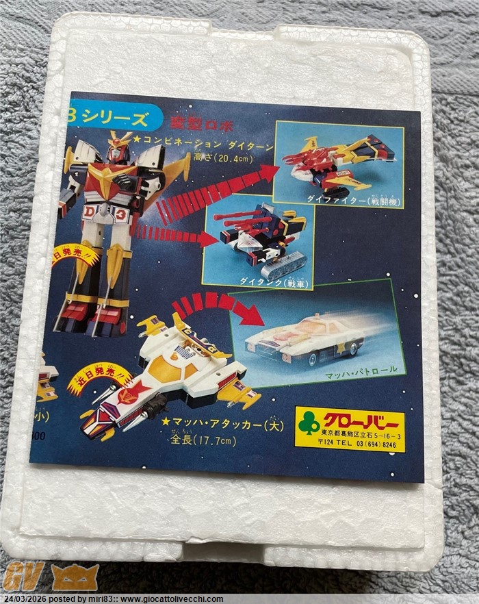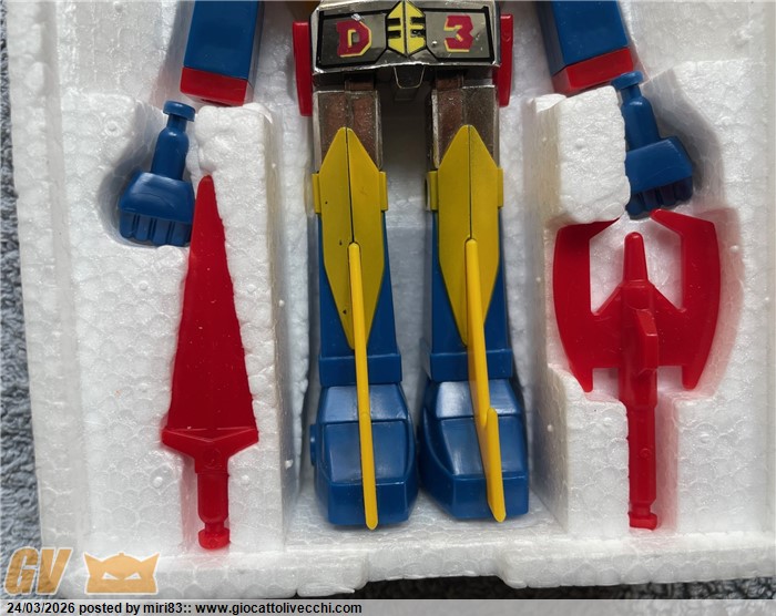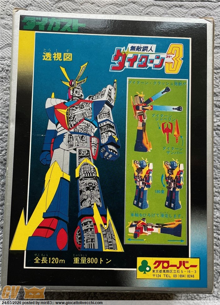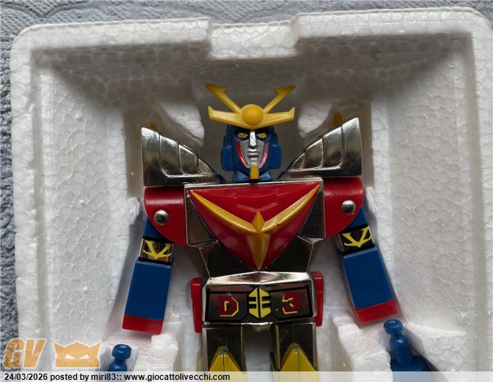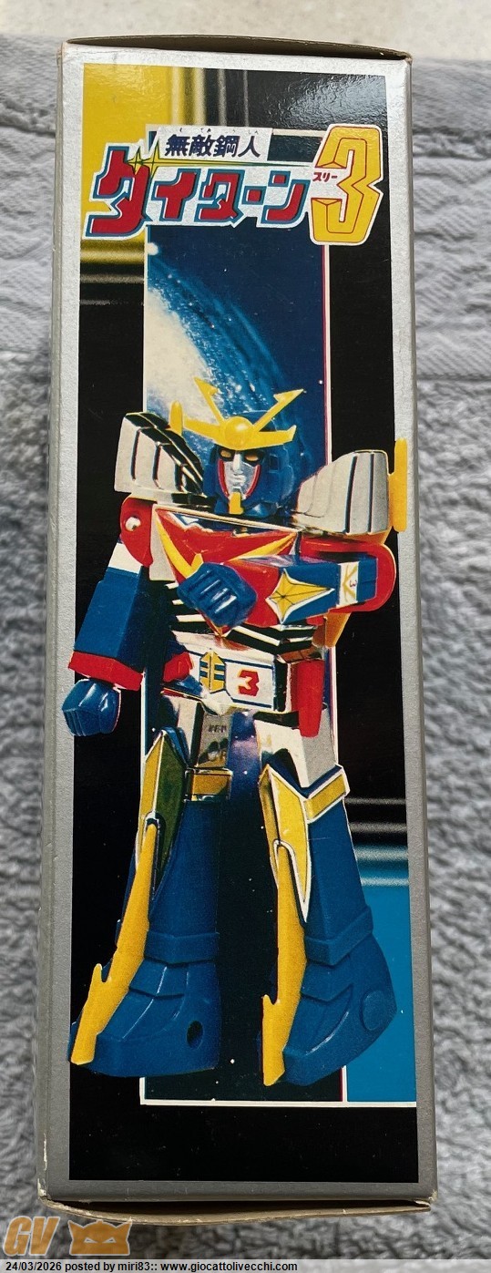vendo daitarn 3 st, scatola e robot molto belli il polistirolo è tagliato all altezza delle spalle dove è alloggiato il robot e il copri polistirolo è segnato dal petto del robot, adesivi ancora da attaccare. tutto come da foto per il resto chiedete pure .