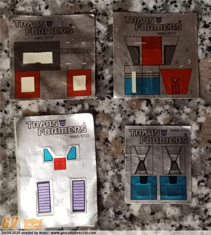 Set di adesivi originali (alcuni assenti)per i 4 robot piccoli.