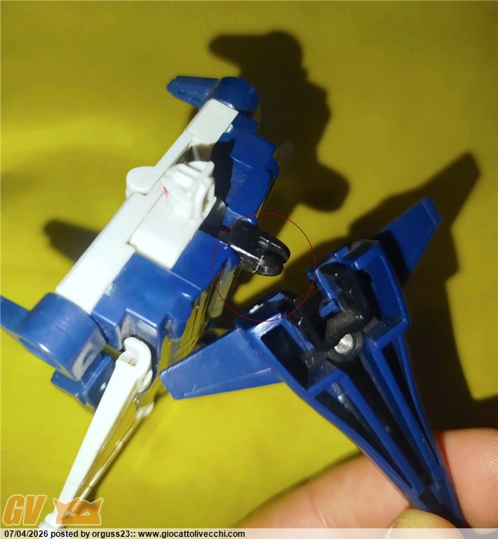 STATO DI CONSERVAZIONE : IL GIUNTO CHE AGGANCIA LA PUNTA DELL`AEREO HA UNA PICCOLA INCOLLATURA, VEDI FOTO CERCHIATA, ED IN MODALITA` ROBOT NECESSITA DI TROVARE LA POSIZIONE PER RIMANERE AGGANCIATO.