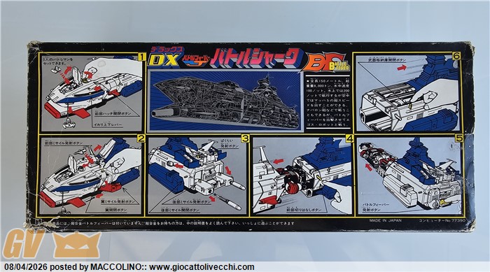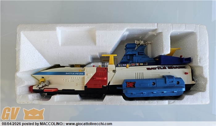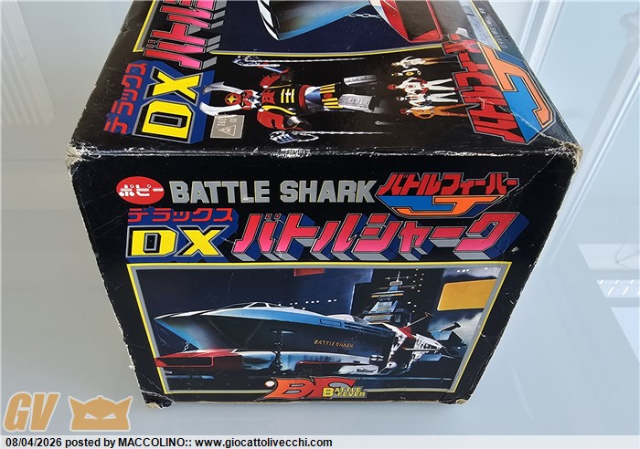 Battle Shark DX perfetta in tutto, cromature bellissimie, nessuna sverniciatura o rottura compresa l`antenna che è sempre mancante della parte superiore, polistirolo integro completo anche dei due fermi, ci sono tutti gli accessori che vengono forniti in dotazione. Box con qualche imperfezione ma integro senza nessuna mancanza. Oramai divenuta difficilissima da trovare in queste condizioni.