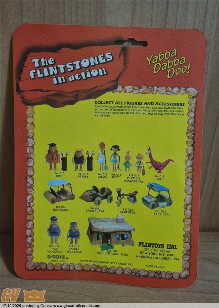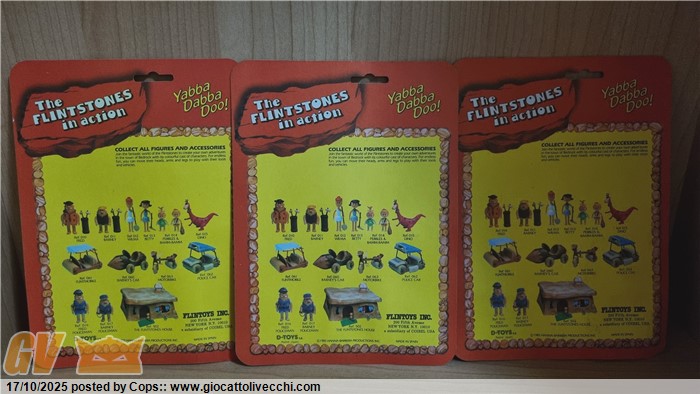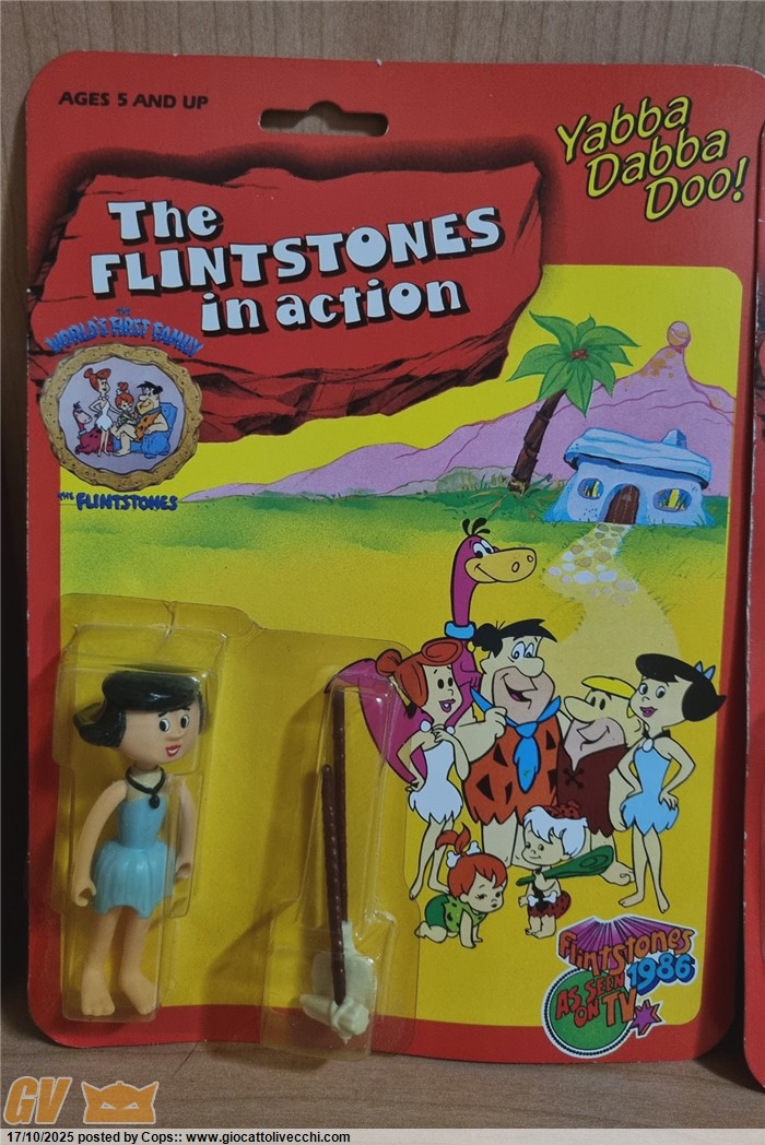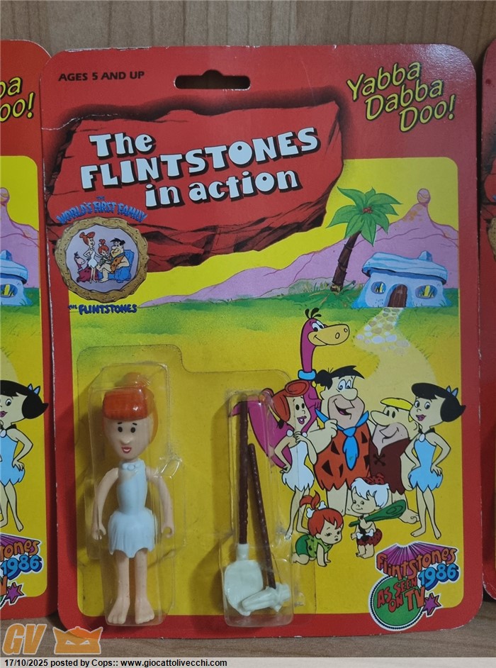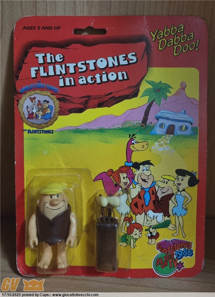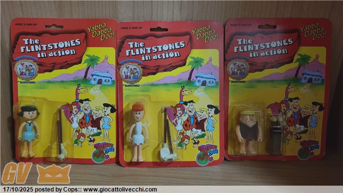 3 ACTION FIGURES THE FLINTSTONES GLI ANTENATI VERSIONE PIÙ RARA 1986 MOC NUOVE + DINO (CRESTA ROTTA)