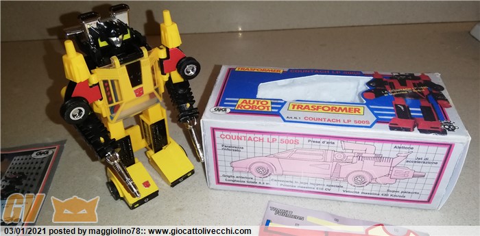 Come da foto vendo transformer Gig countach lp 500s detta come sunstraker (lince) completoa di accessori e istruzioni, scatola e polistirolo ricostruiti come d`origine.. Info domande chiedete pure