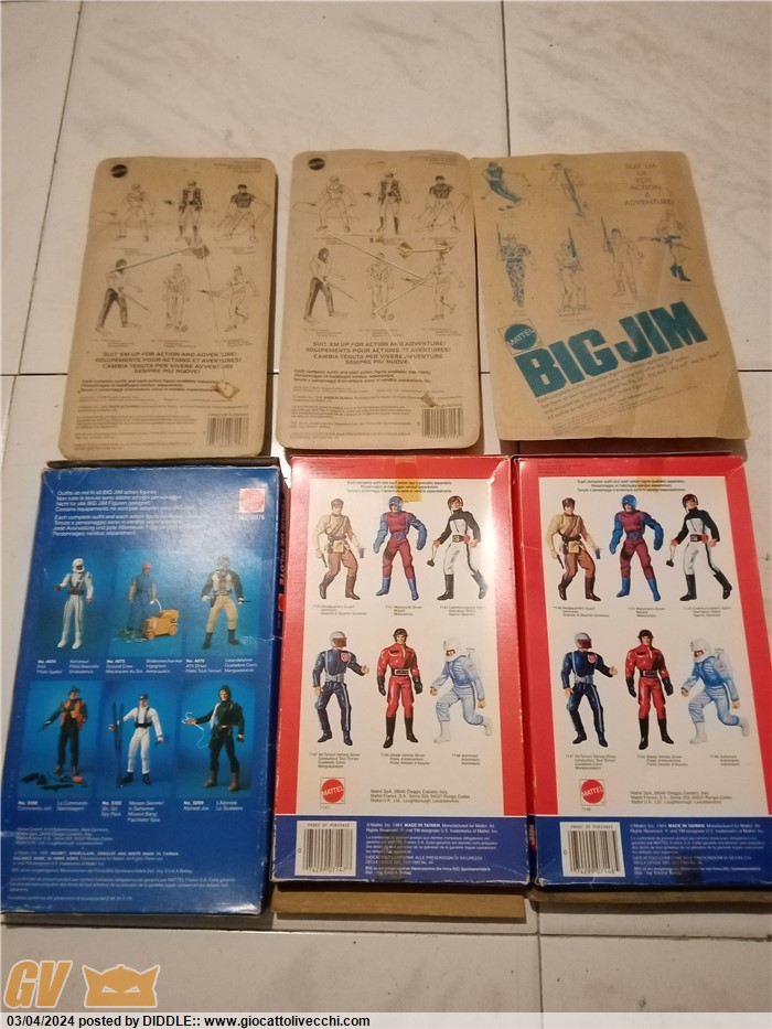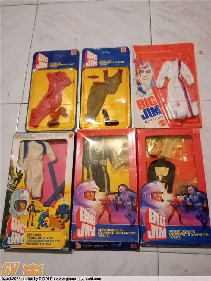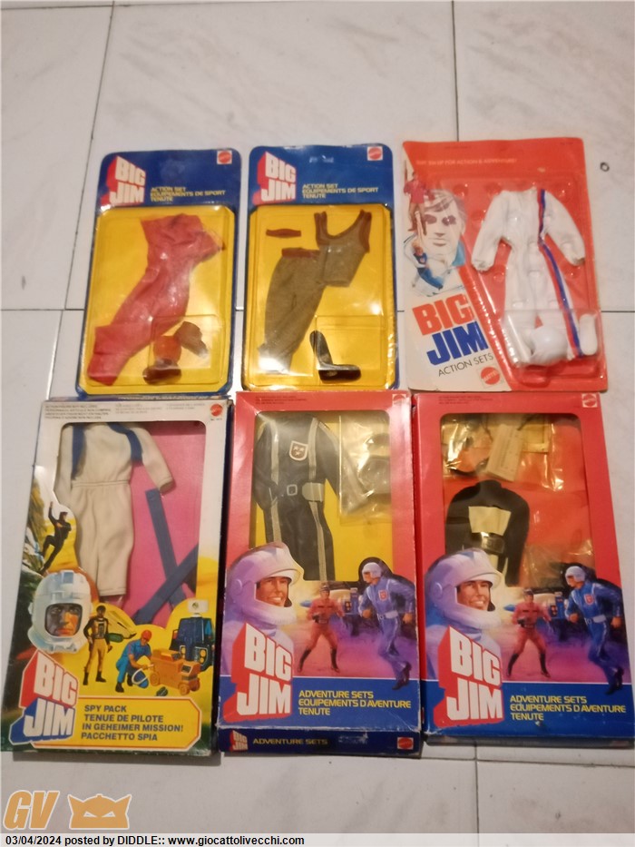 Lotto outfit serie big Jim Mattel 80 alcuni non completi e con contenuti diversi, lotto non divisibile