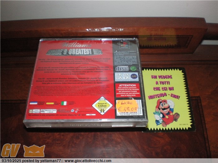 Vendo, videogiochi nuovi e sigillati x la console PlayStation, ovvero Colony Wars e WILLIAMS Arcade`s, nel cui secondo titolo possiamo trovare nomi come JOUST, DEFENDER, Defender II, Robotron e BUBBLES.