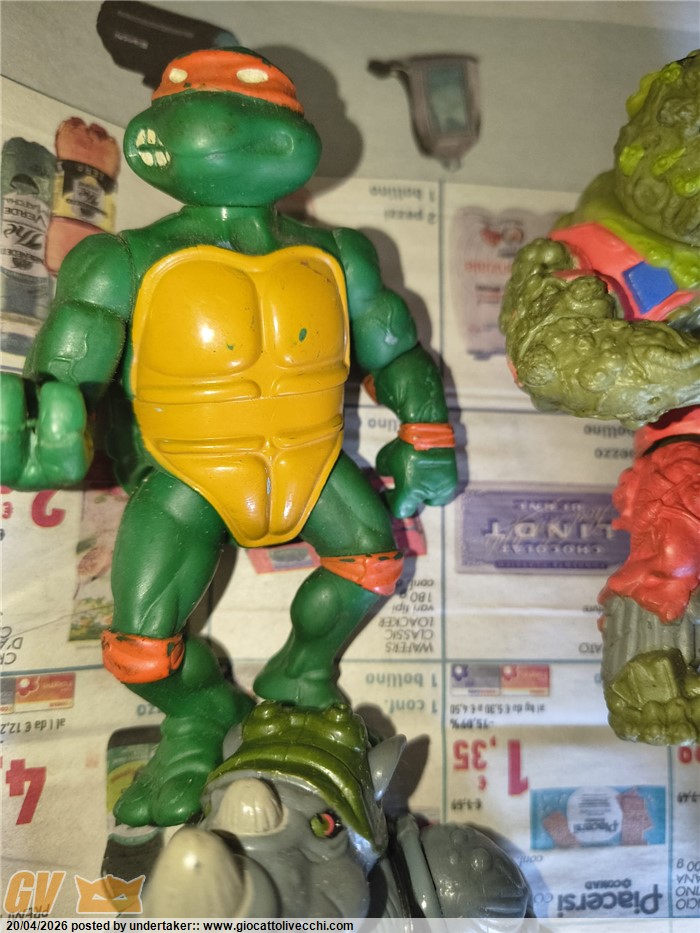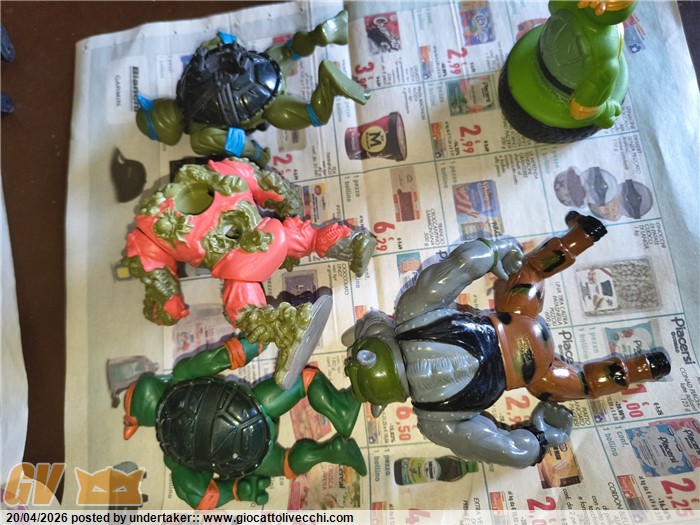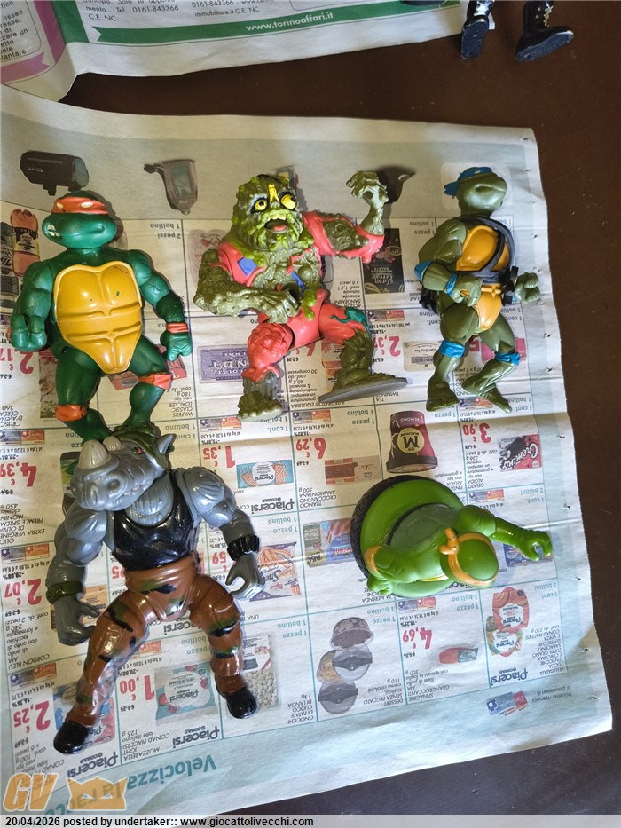 Lotto tartarughe ninja, materiale anni 80 senza rotture , prresenti dei punti dove la vernice e` venuta via`, giubnture in buone condizioni